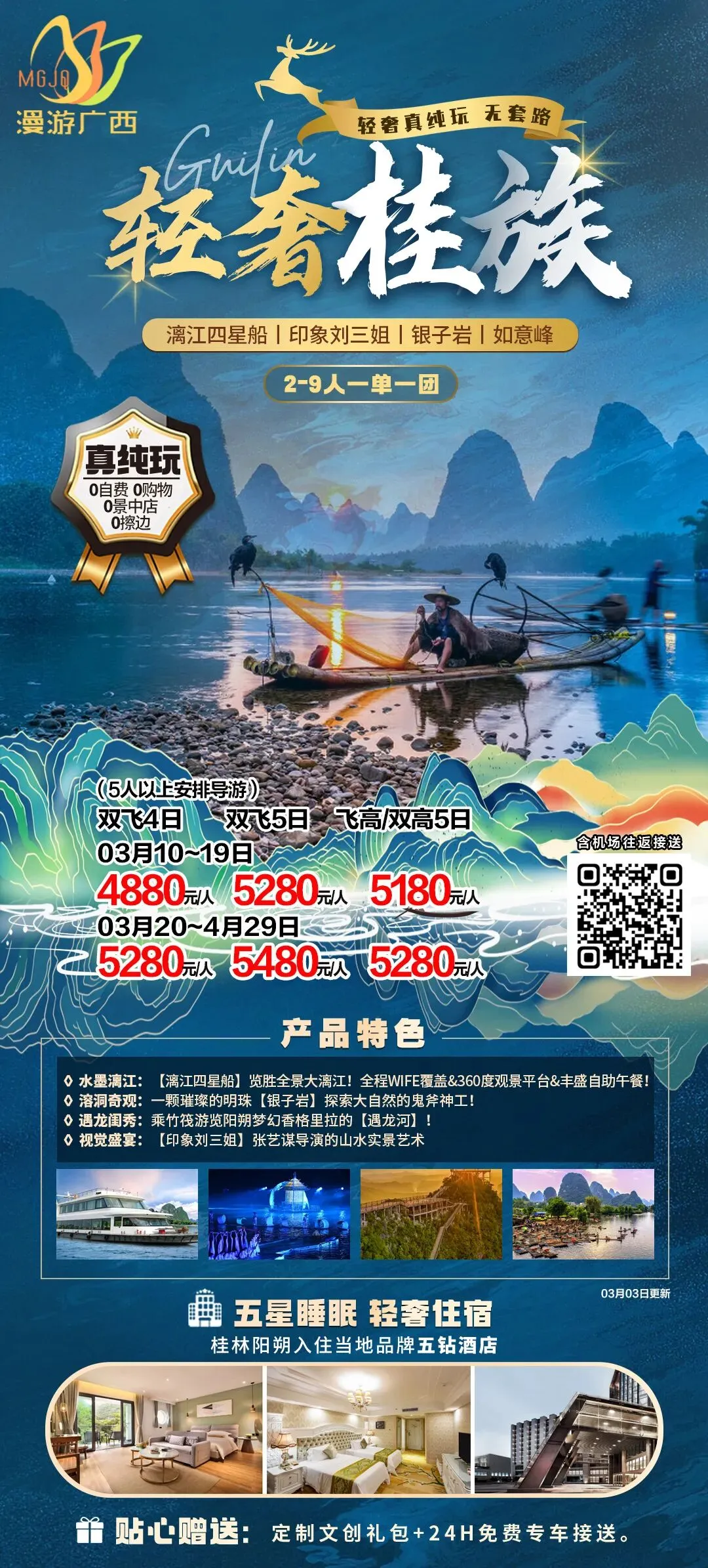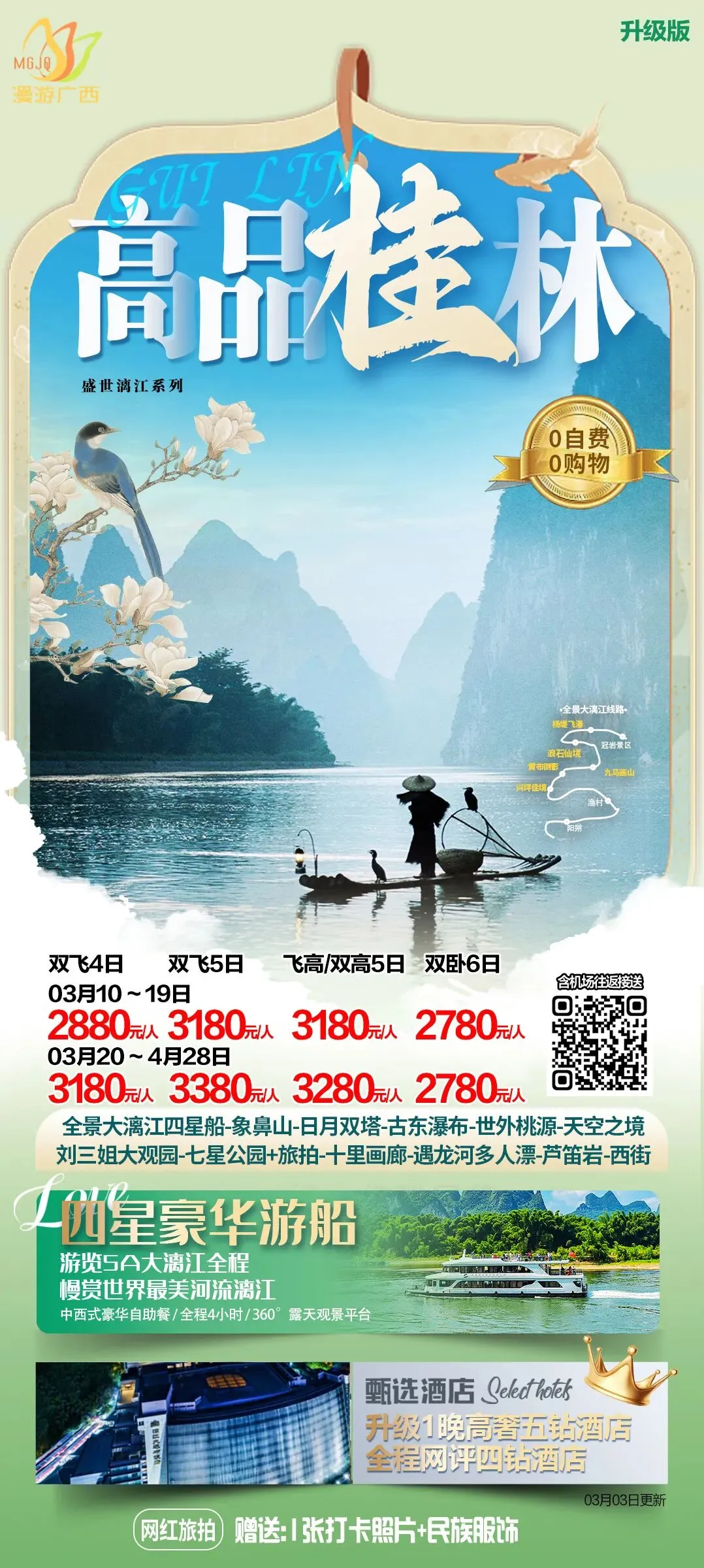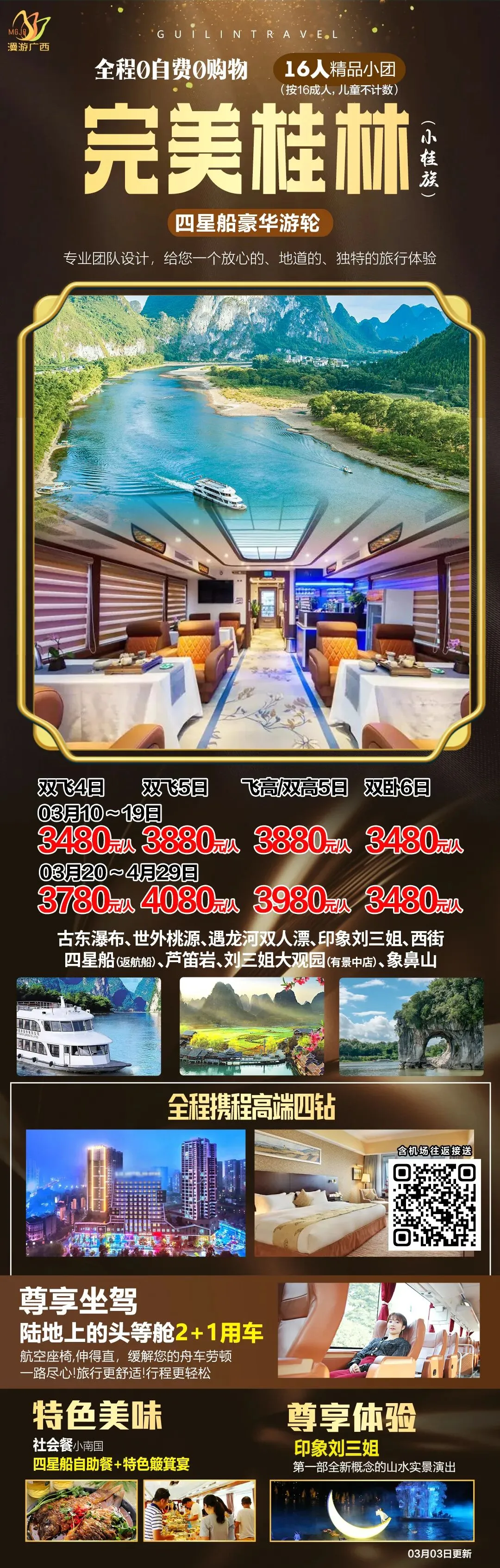 🌷奢享【漓江四星船】360度漓江全景!