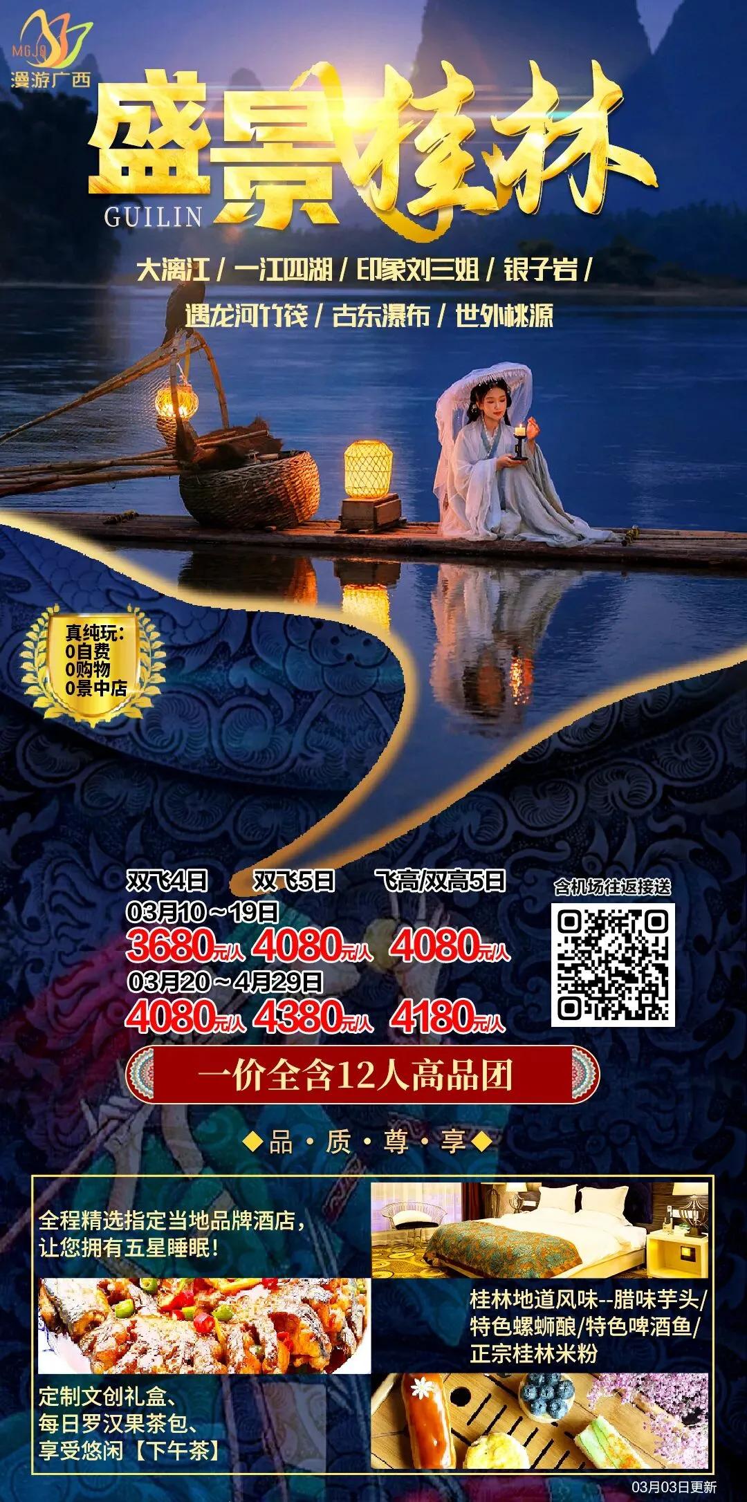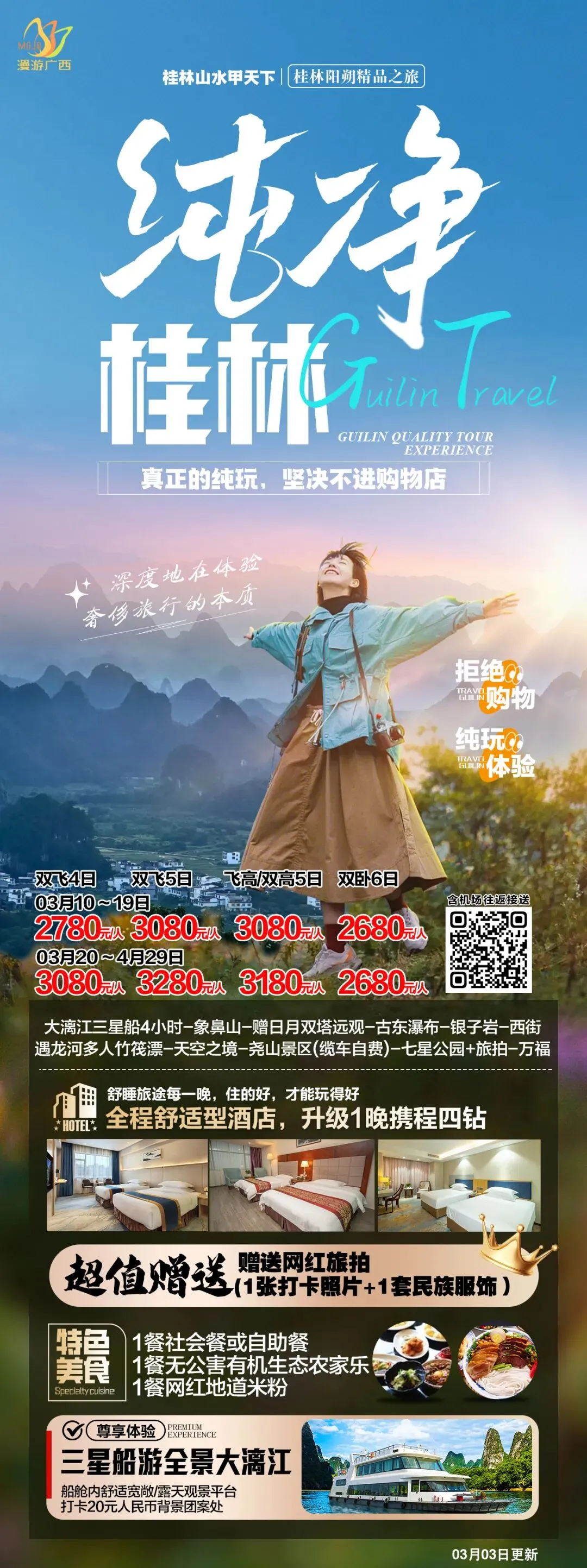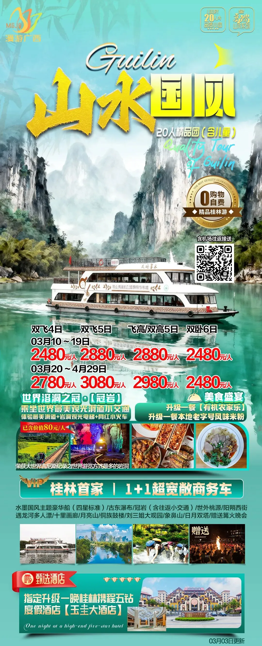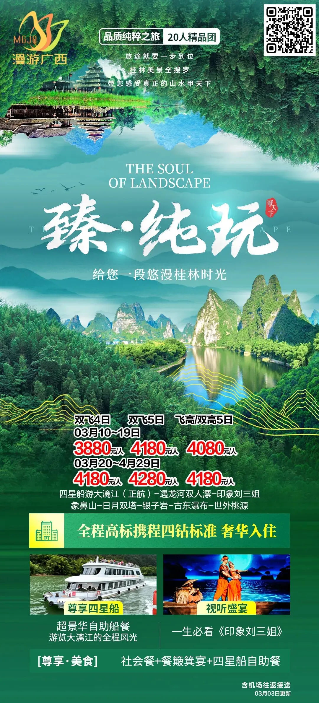 🌷奢享【漓江四星船】360度漓江全景!