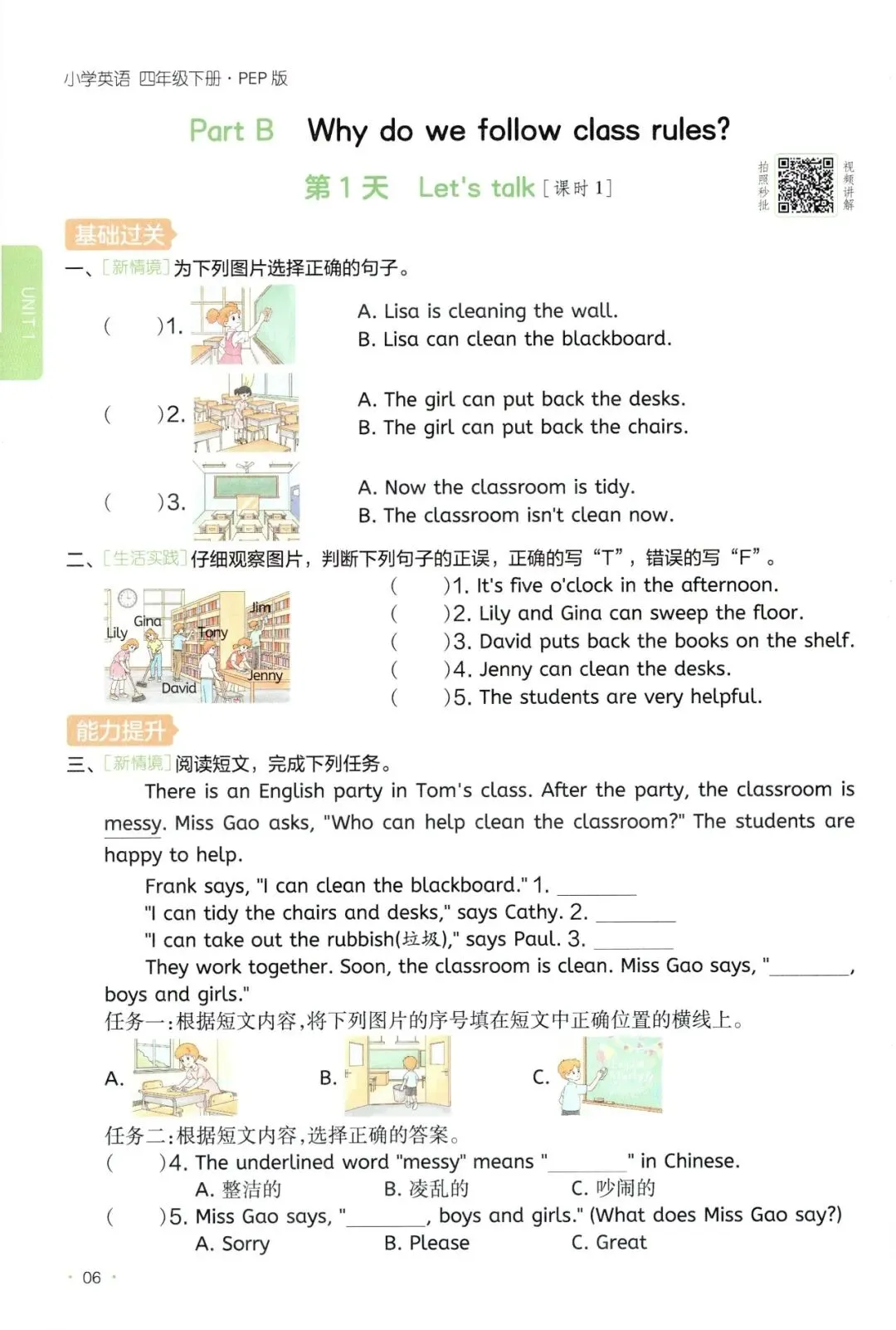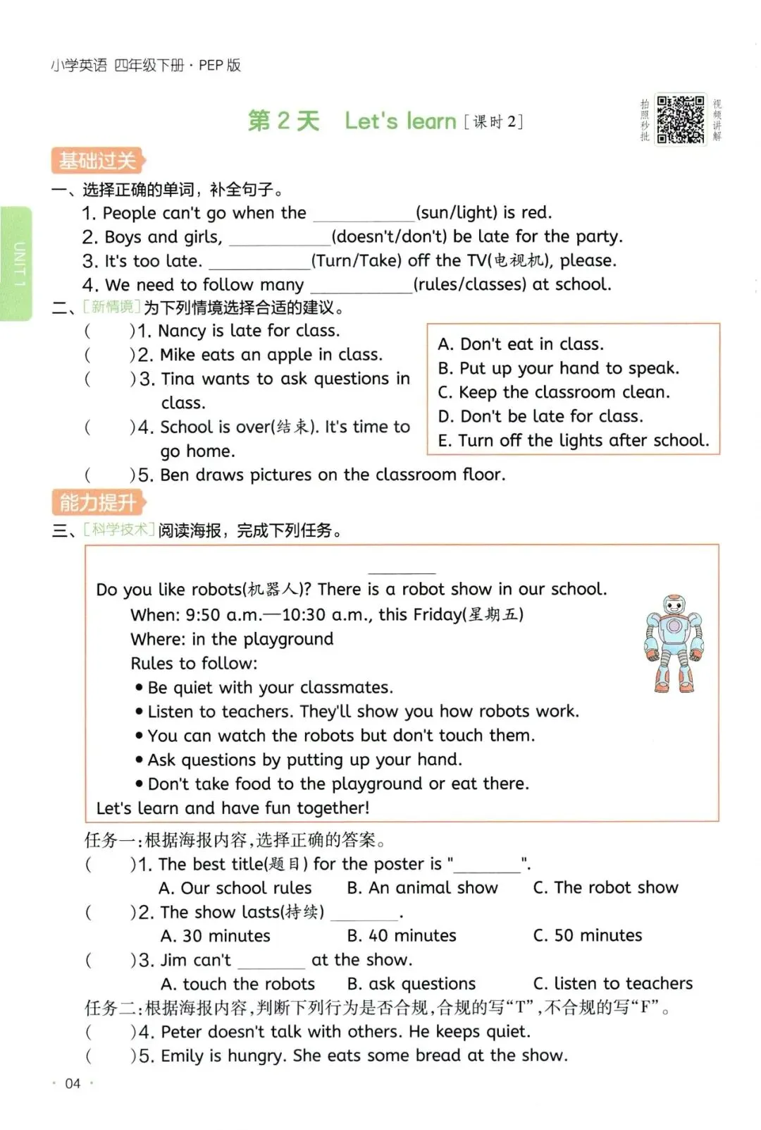 26春(人教pep版)四年级下册 英语《 全册课后小练习+单元综合测试练习+听力音频 》附答案 可打印下载