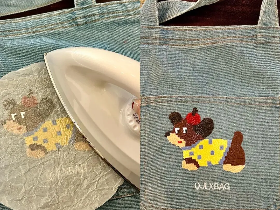 盖上助烫纸,拿小熨斗一烫,搞定。