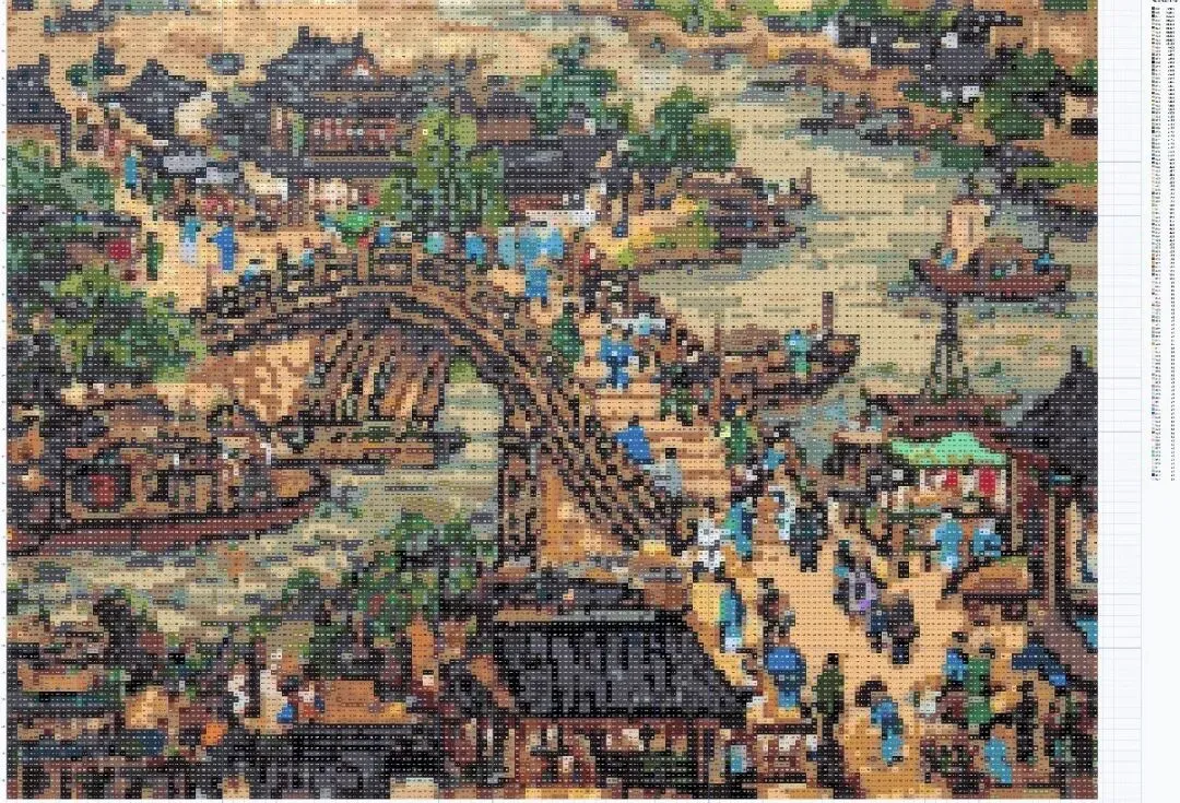 小红书@糖豆豆的小可爱呀还有个狠人,用两周时间拼出四分之一幅《清明上河图》,成品长50厘米、宽40厘米,耗时近20个小时。