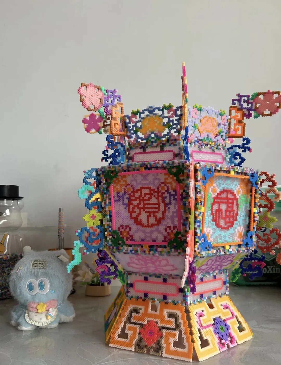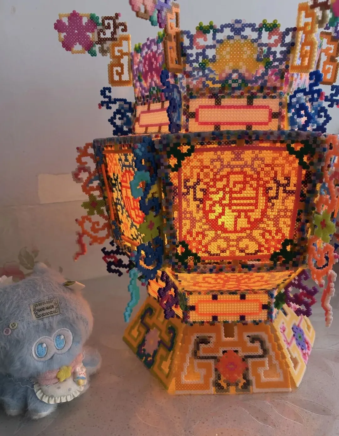 现在的大神们已经开始用拼豆做立体花灯,几万颗豆子做的。