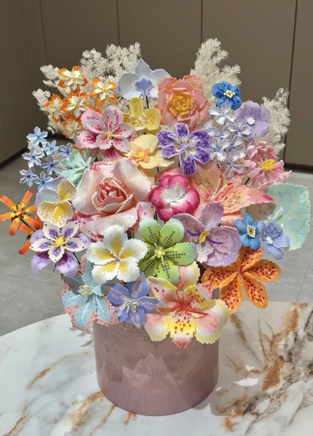 有位博主耗时一个多月完成的立体抱抱花桶,饱满又精致,每一处细节都不放过,很有层次。