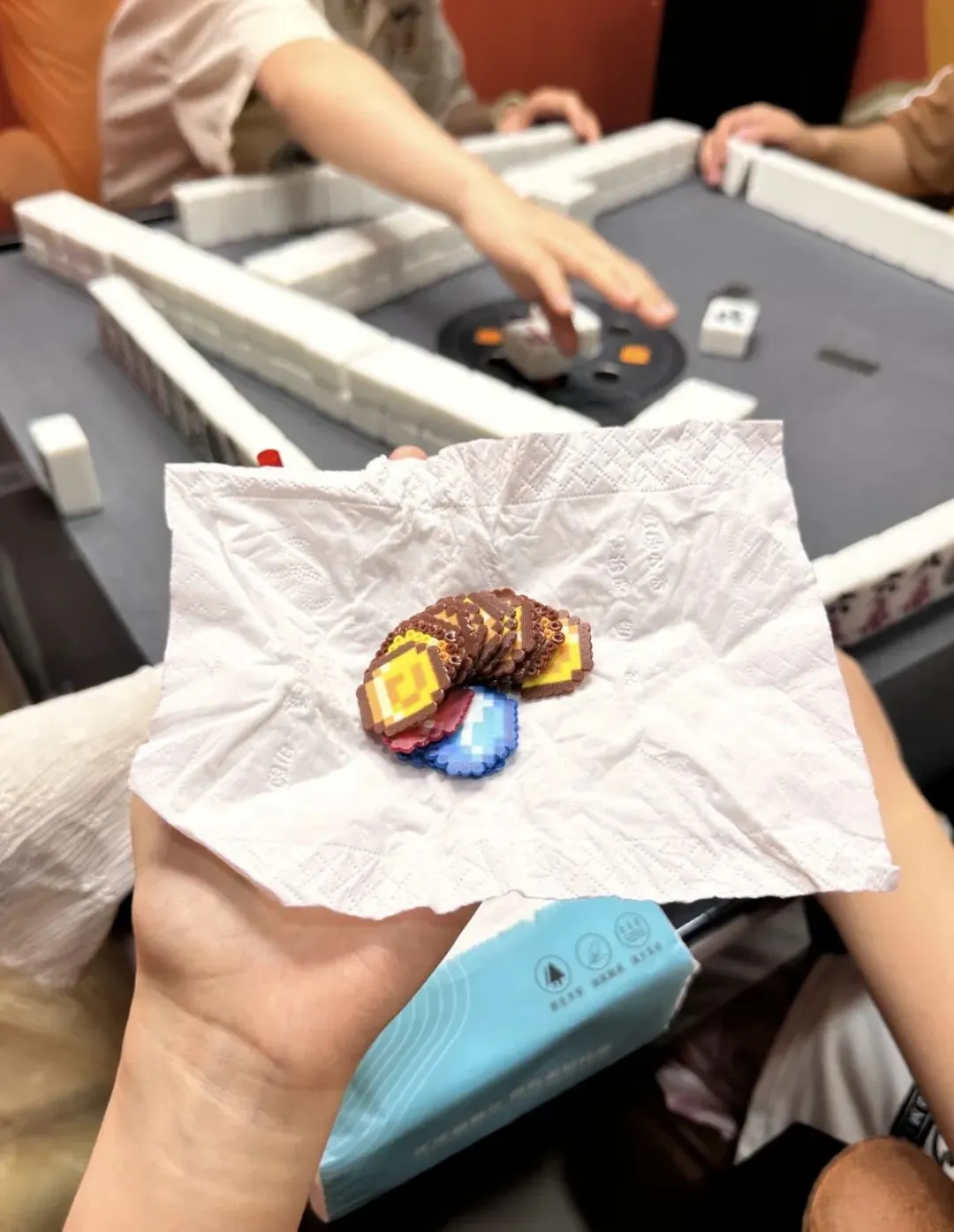 小红书@minychung没有条件就创造条件,没有麻将就做一套麻将出来。