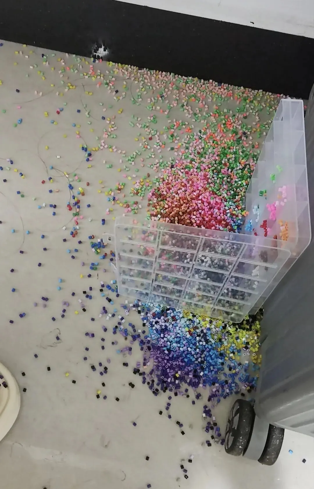 拼了4小时不小心碰到豆板,即将完成的作品瞬间崩塌。