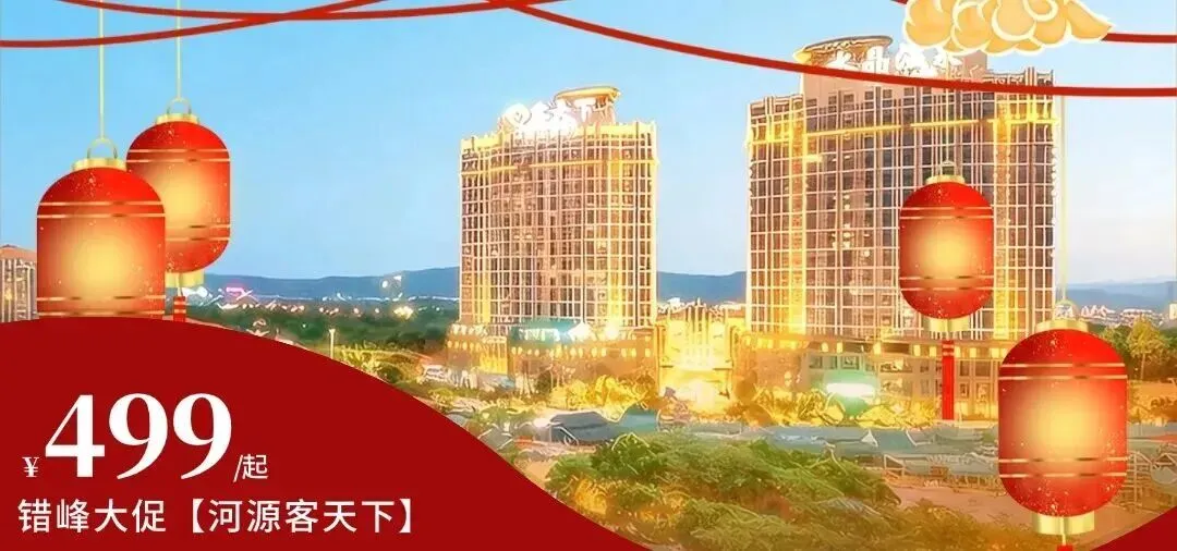错峰大促【河源客天下】仅¥499抢温德姆花园/国际酒店·两房一厅豪华套房+四人早餐+无限次温泉¥699含四人鸡煲晚餐套餐!打卡网红景点客家小镇!!!!