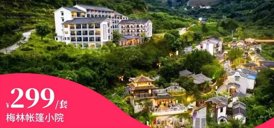 【广东天露山旅游度假区】春日趣野¥299抢梅林帐篷小院双床房+赠双人玻璃漂流/小火车+双早+双人门票+30游乐金+温矿泉/泳池+篝火晚会!