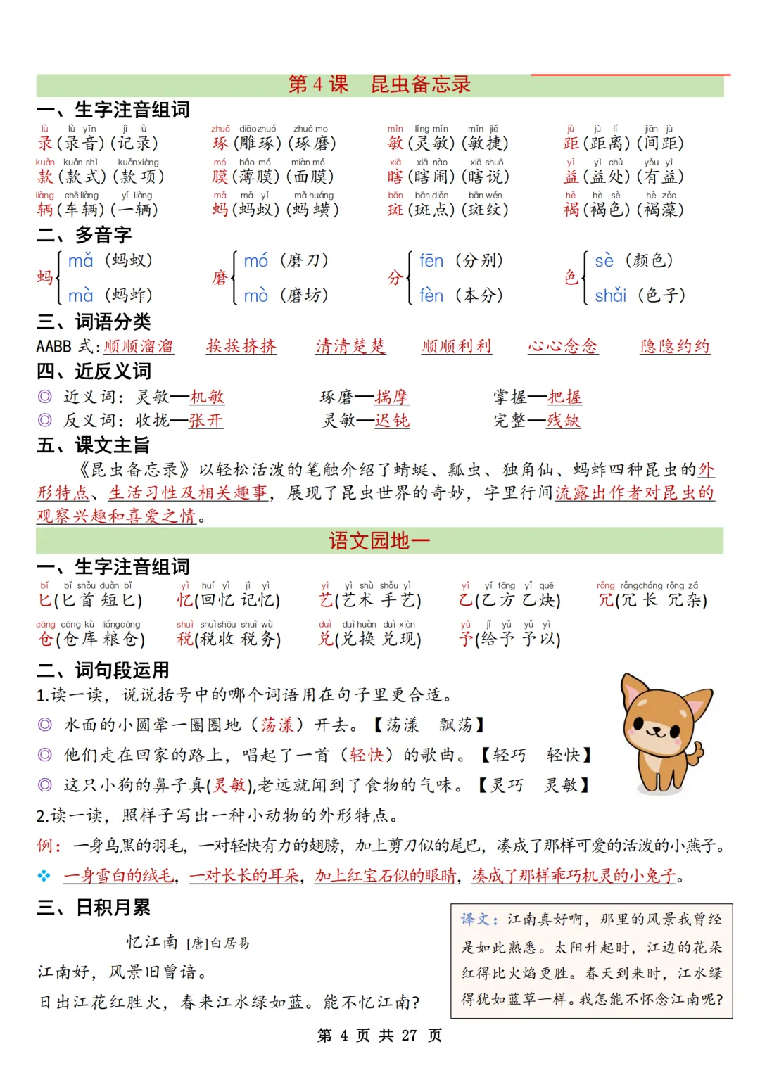 《三下语文全册知识点清单》