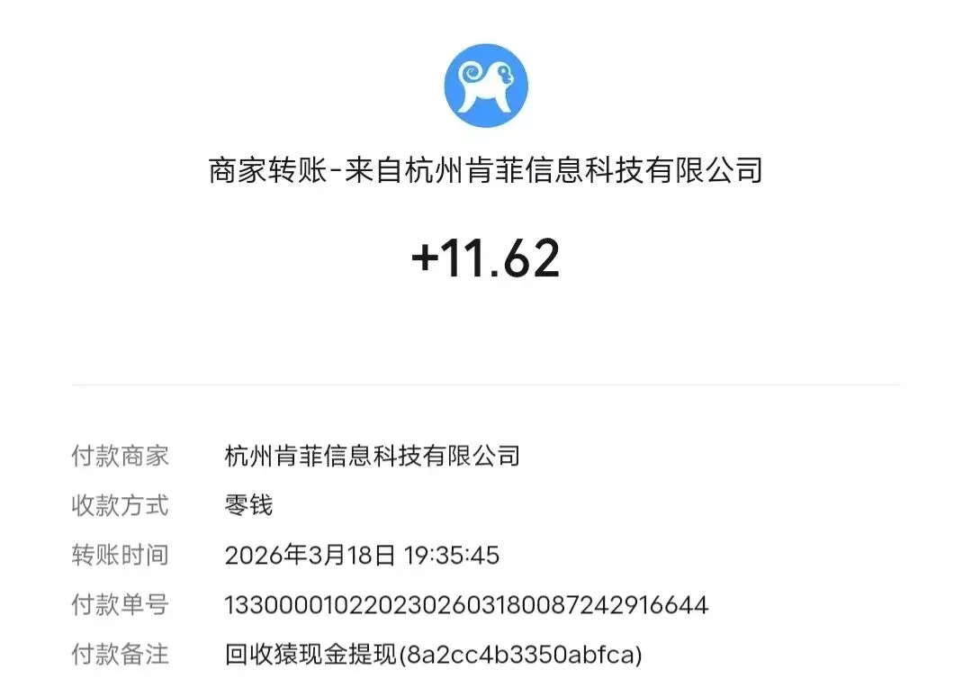 二、微信小程序;回收猿,攒了11.62元了,落袋为安,也是秒到账!