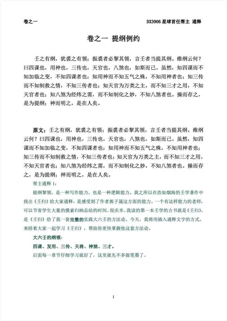 帮主陪你读《壬归》 PDF 230页,星球首任帮主对《壬归》这个经典六壬古籍的通译,学习经典不再是难事