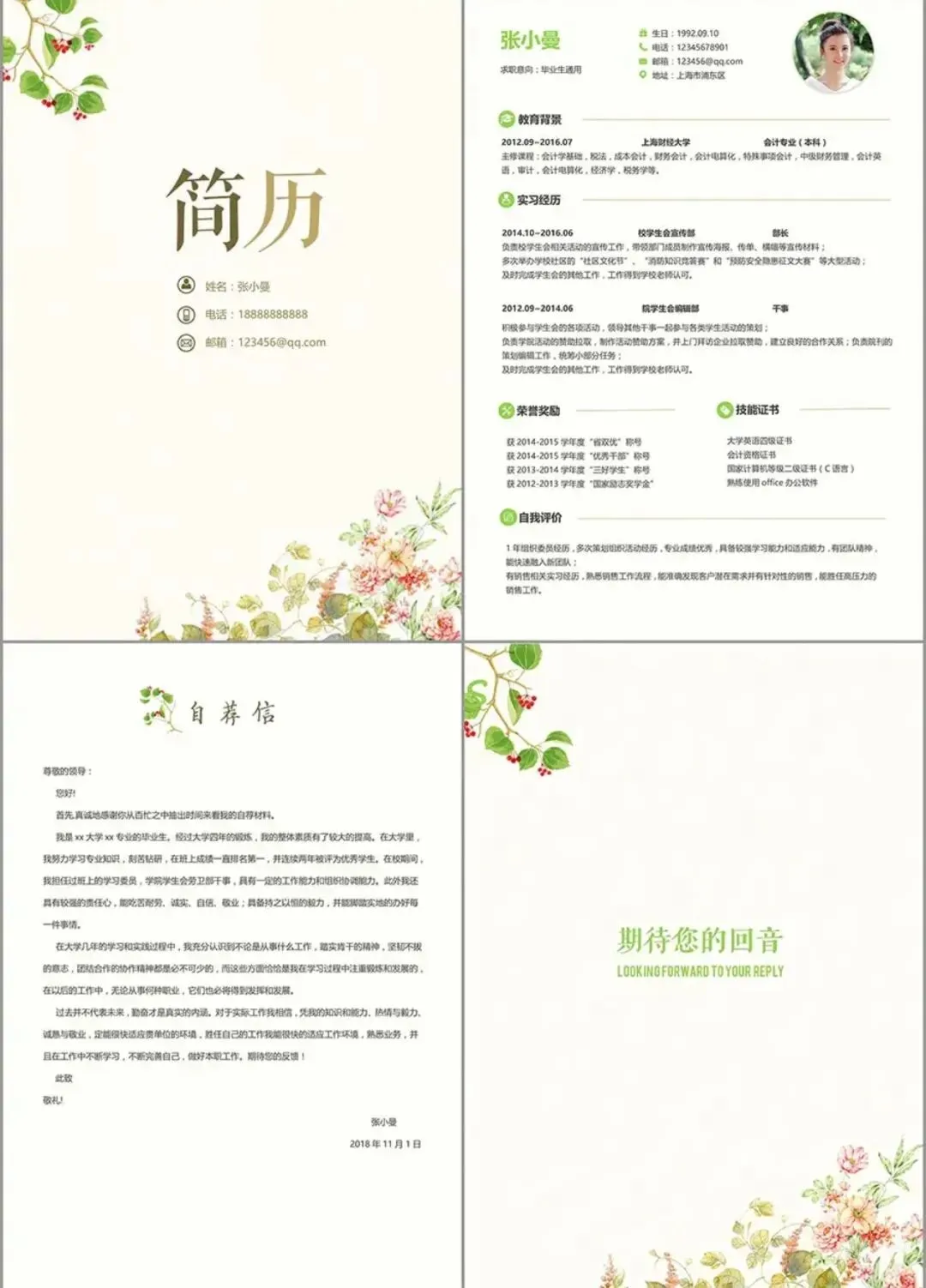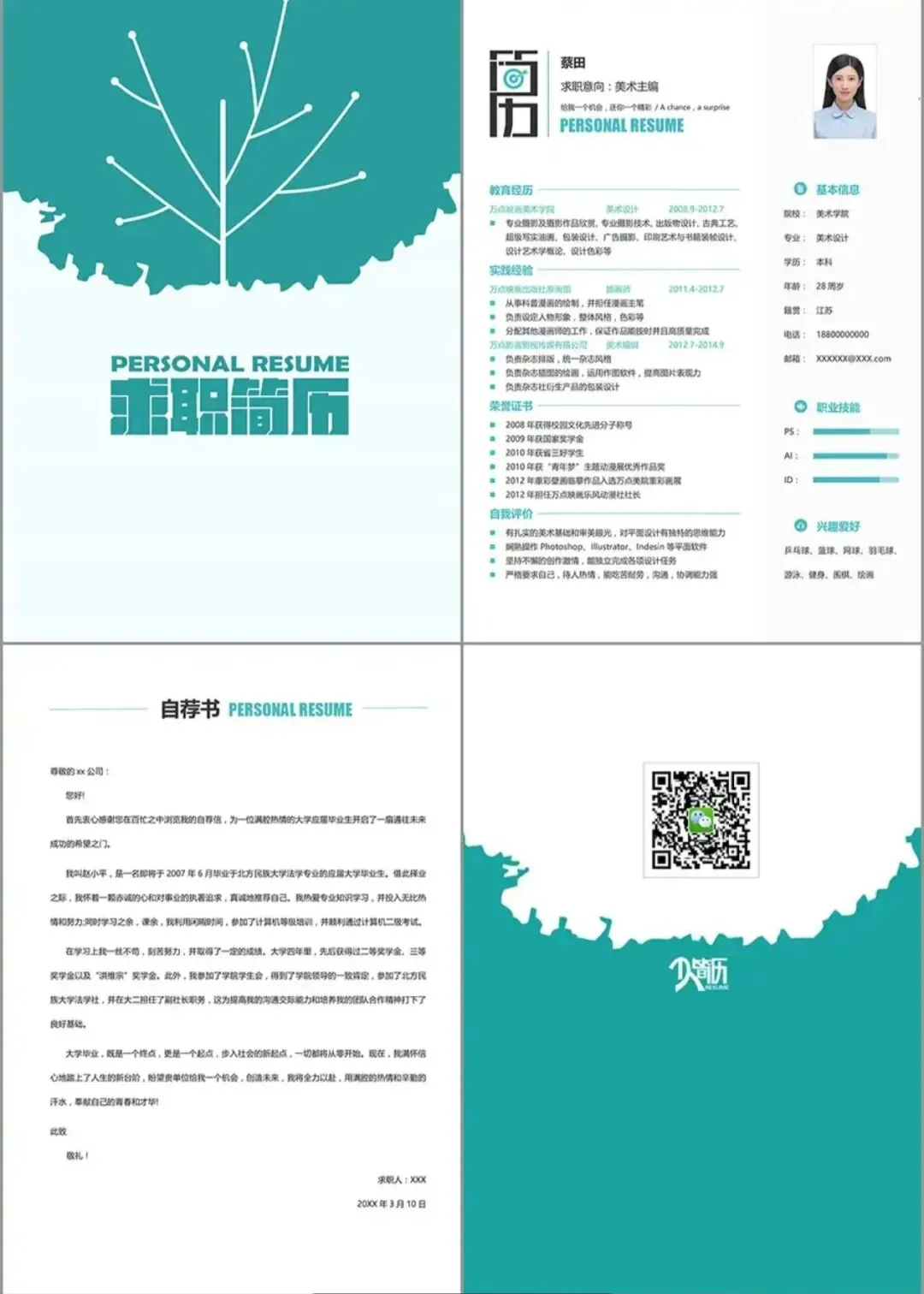 无偿分享 【48套】四页简历模版合集(免费保存下载)