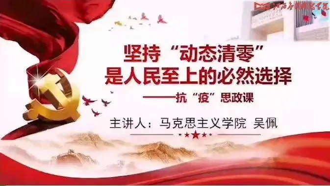为切实加强疫情防控期间大学生思想引领和政治教育,落实学校“停课停学不停教”总体要求,江西应用科技学院思政课教师成立了战“疫”思政微课宣讲团,在既定课程内容的基础上,专题策划了战“疫”思政微课,及时将疫情防控内容融入教学,坚持化危为机、抓住契机,肩负起观察时代、解释时代、引领时代的担当,积极发挥好思政课强信心、暖人心、聚民心的作用。