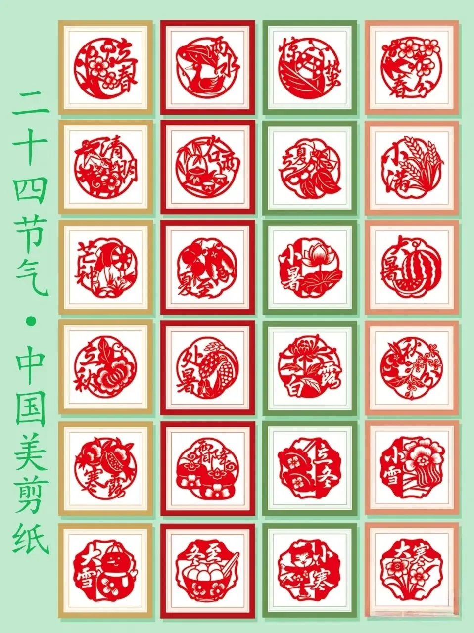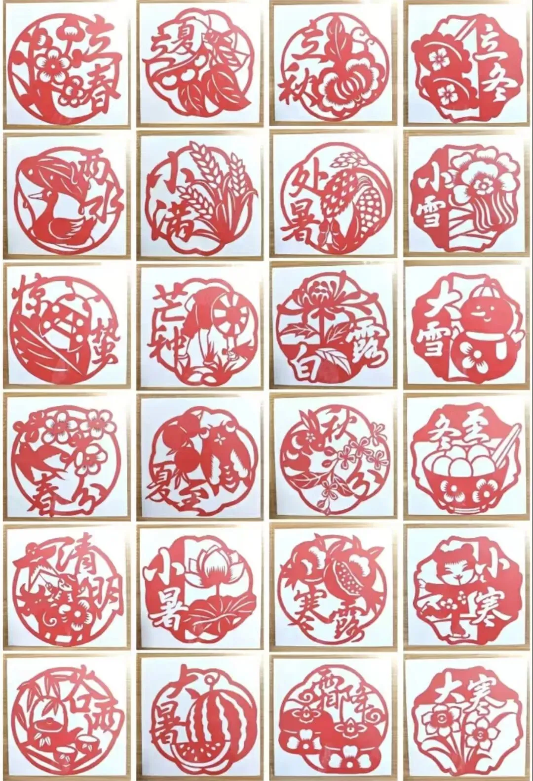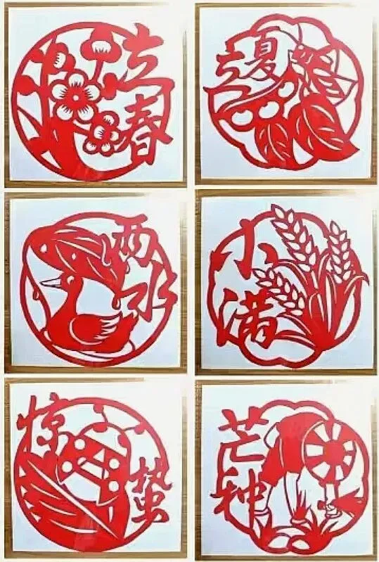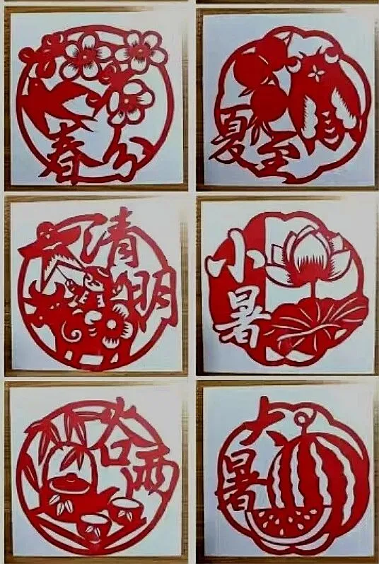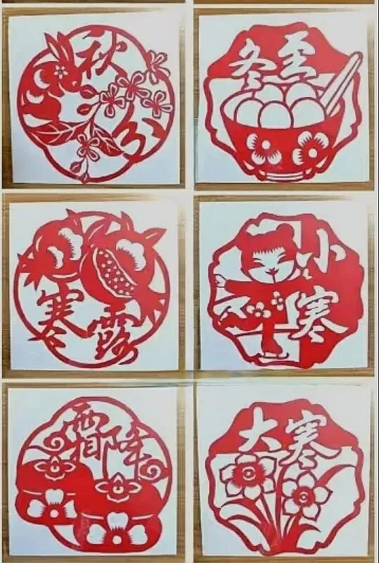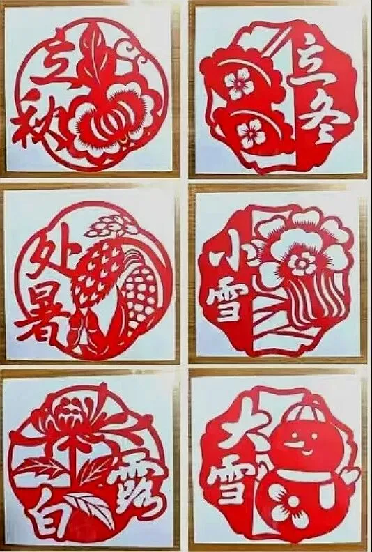· 其他节气:以此类推,夏季剪荷花、西瓜、蝉;秋季剪菊花、丰收的瓜果;冬季剪梅花、雪花、窗花等。