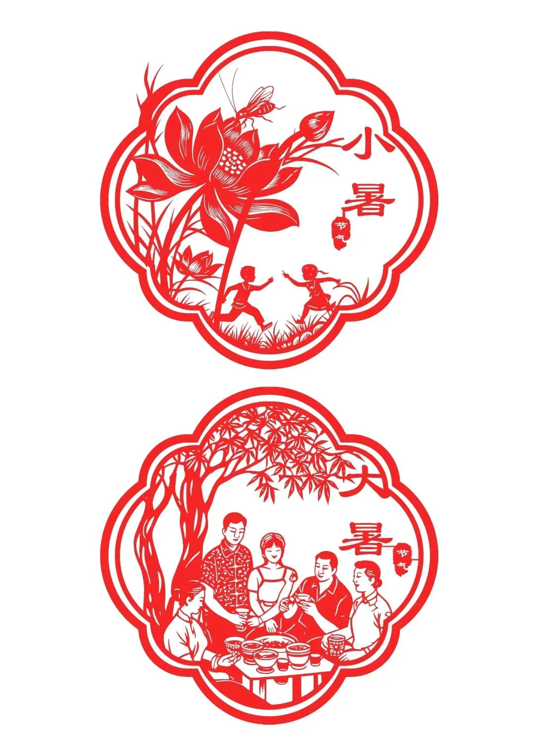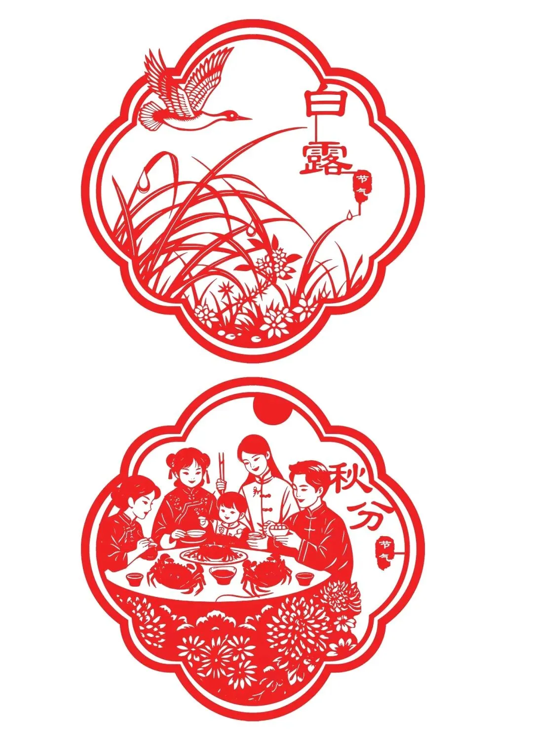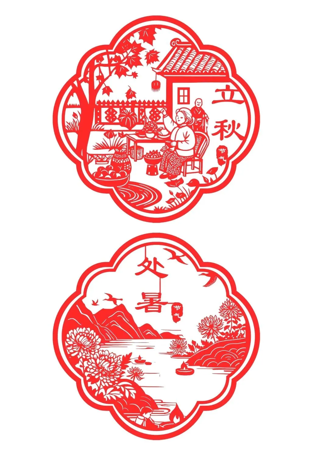 · 其他节气:以此类推,夏季剪荷花、西瓜、蝉;秋季剪菊花、丰收的瓜果;冬季剪梅花、雪花、窗花等。