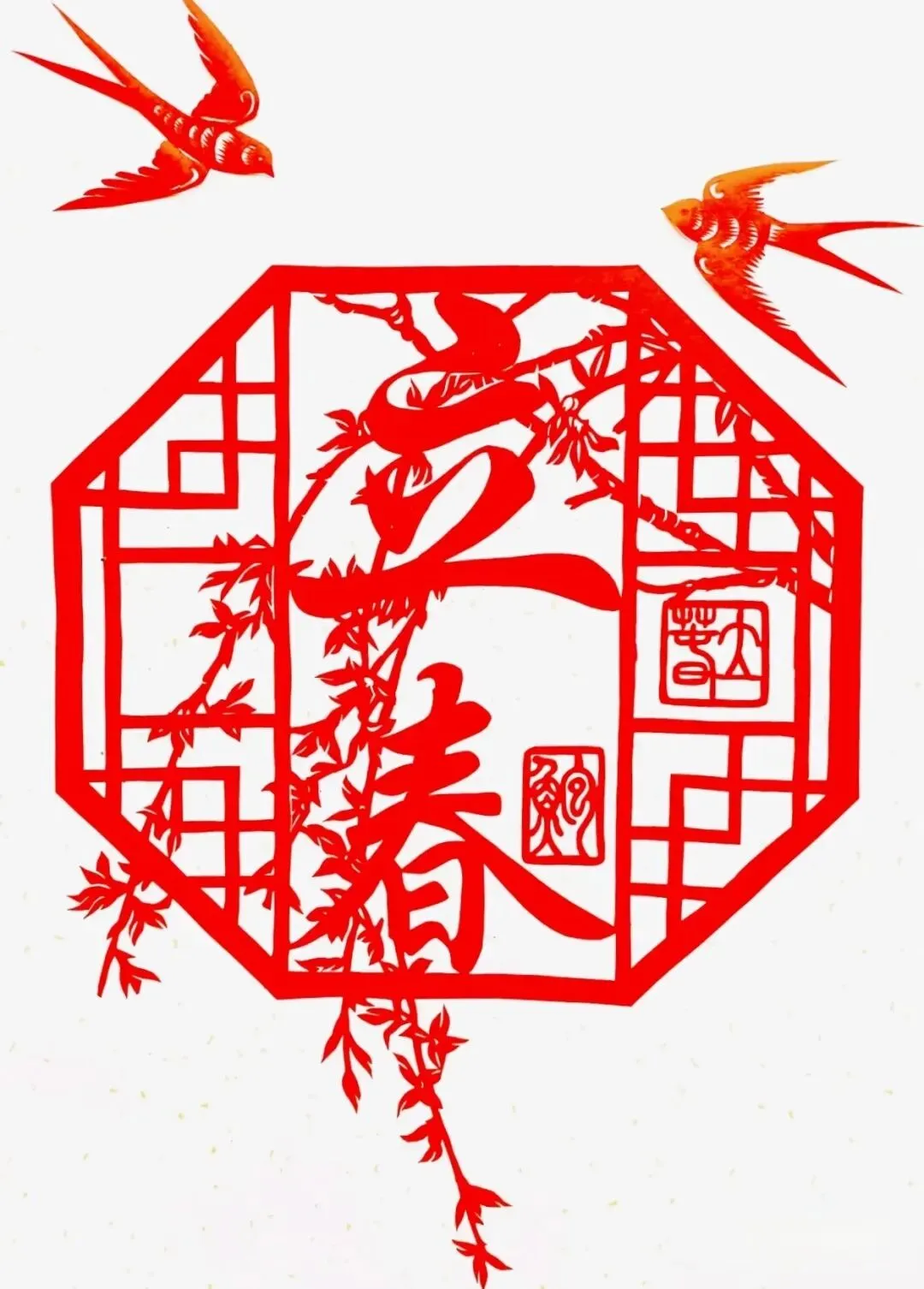 · 春分:可以尝试剪“立蛋”的小燕子和人物形象。
