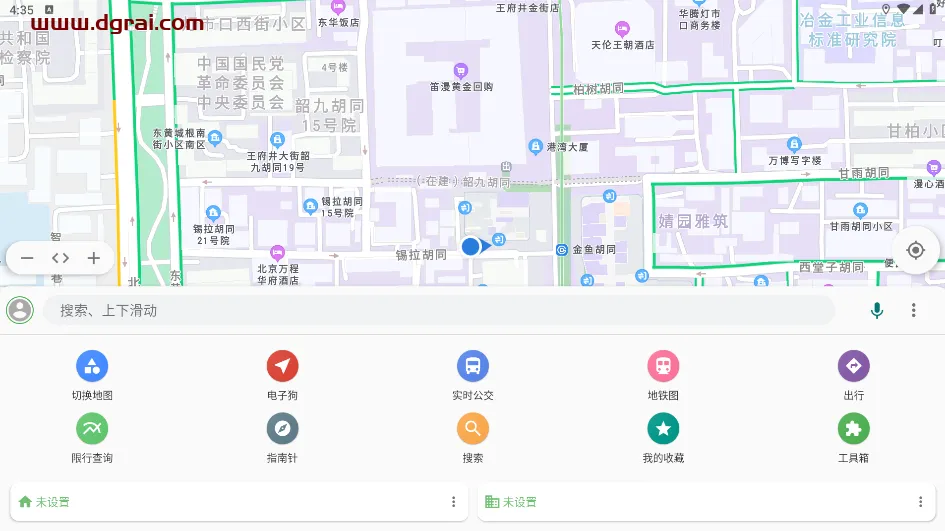 除了把百度、高德和腾讯的地图数据整合在一起,还支持平面地图、3D地图和卫星地图,还能实时了解路况。此外,还提供了一些实用的小工具,比如电子狗、测距、实时公交和地铁图等。