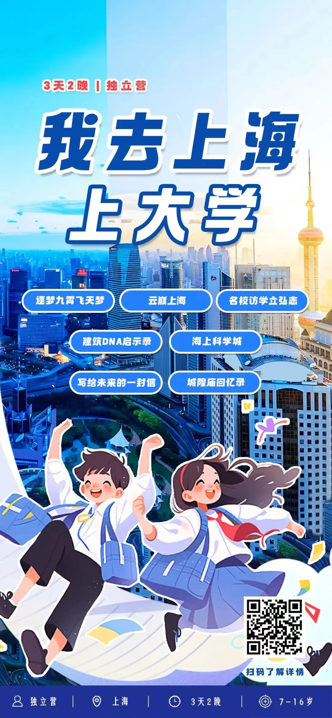 – 营会亮点:走进上海知名高校,感受顶尖学府的学习氛围与人文底蕴,对话高校学子,树立升学目标,提前体验大学生活,种下名校梦想。