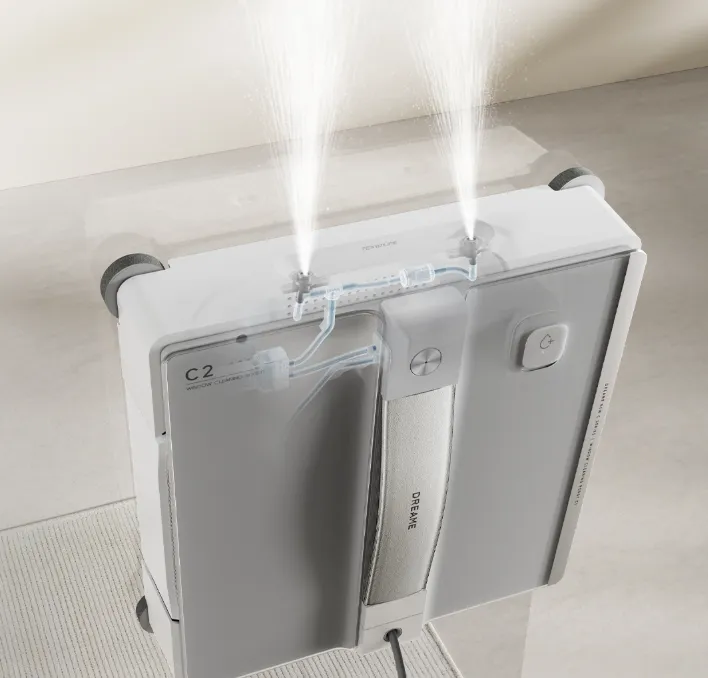 搭配六喷头纳米雾化系统,出水更均匀、覆盖更全面,清洁覆盖效率大幅提升,同时在玻璃表面形成一层短效保护膜,有效减少水痕与指纹残留。依托硬件级智能调控与精准压力分配,W1真正做到高效清洁与玻璃养护兼得,实现「深层净、不伤表」,让高层住宅、大落地窗用户都能放心使用。