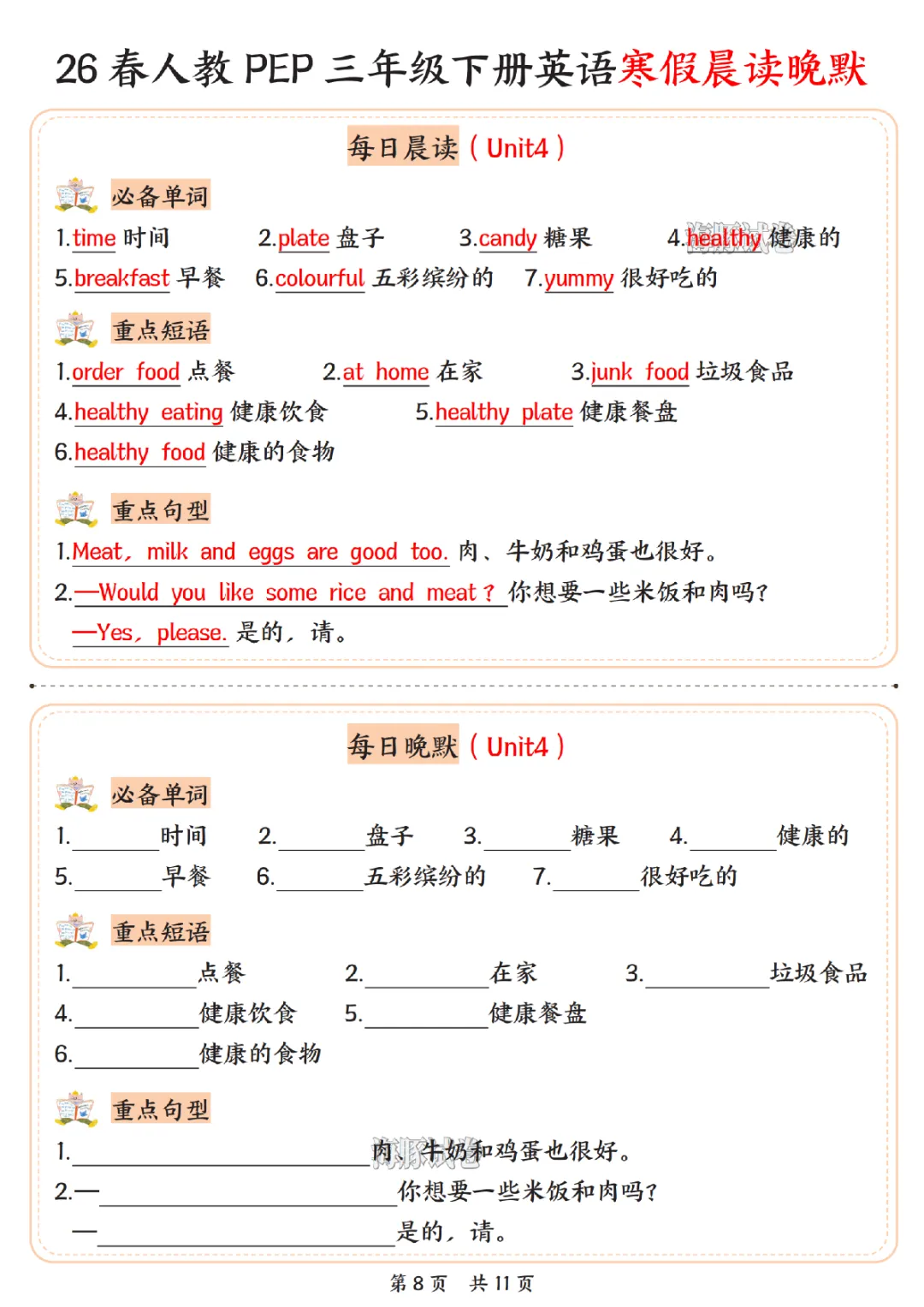 26春《新三年级下册英语人教PEP版晨读晚默》电子版可打印.