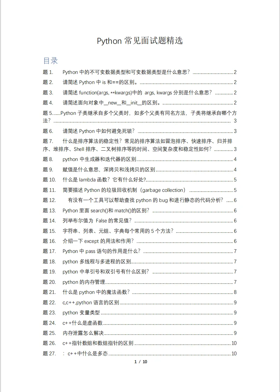 如果大家想应聘算法、AI、大模型、机器学习 / 深度学习 / 强化学习、数据挖掘、数据分析等方向的实习或全职岗位,Python基础知识几乎是面试必考点。