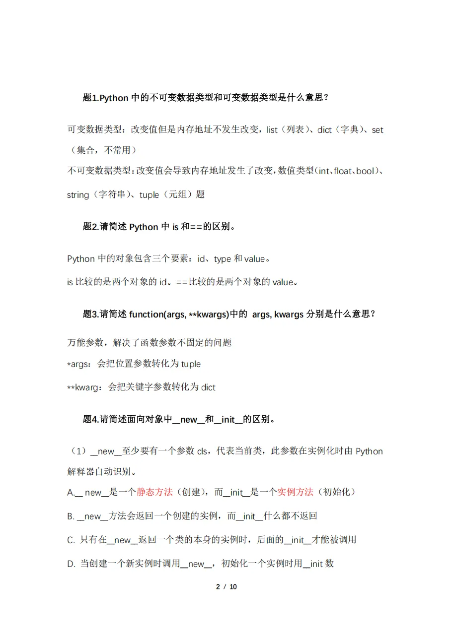 其实 Python 基础的面试 “八股题” 难度并不算高,整体过一遍即可 —— 这类题目大多是 “见过就会答,没见过就容易卡壳”,所以建议大家抽时间完整梳理一遍,避免因基础题失分。