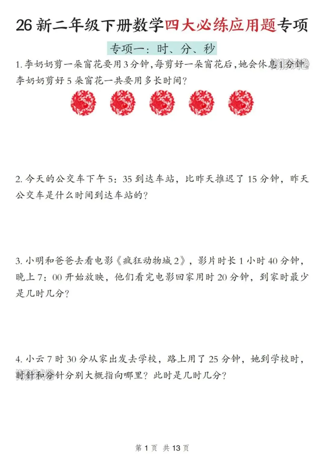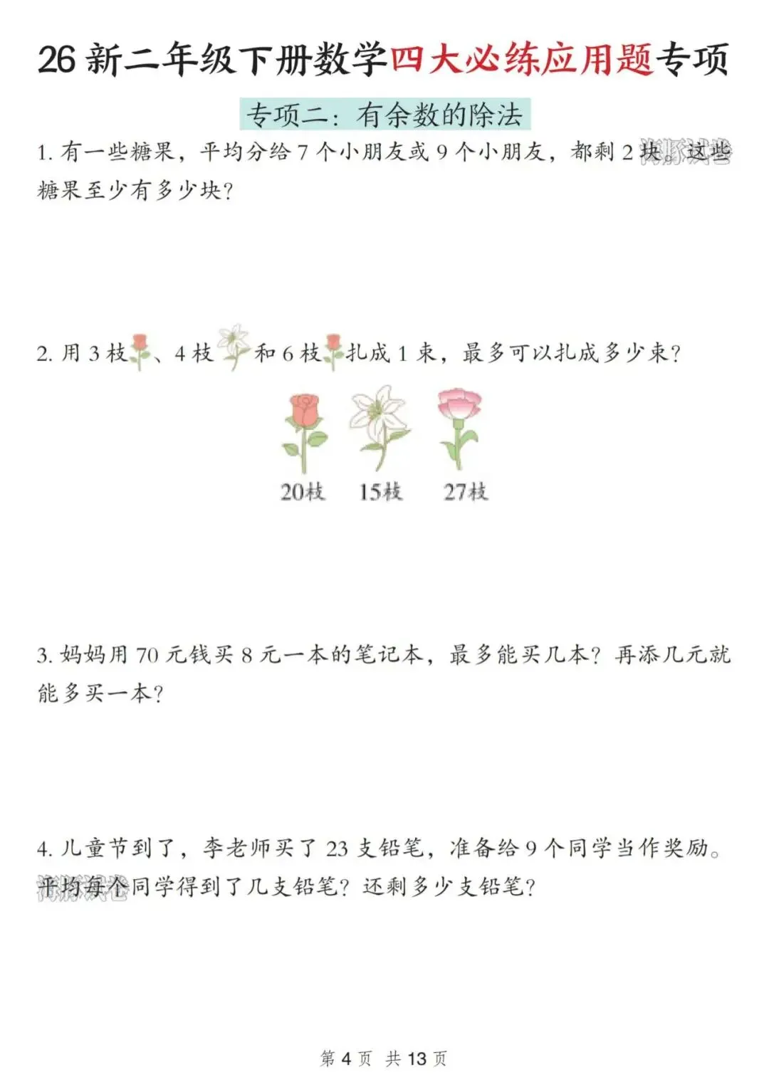 今天涵涵的学霸日记给大家分享的是26新版二年级下册数学四大必练应用题专项,