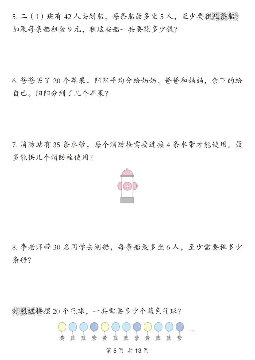 26春二年级下册数学四大比练应用题(电子版可打印)