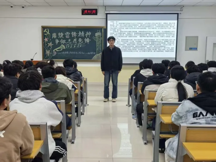学院各大一班级团支部于2026年3月11日在九号楼自习室开展“赓续雷锋精神,争做志愿先锋”主题团日活动,全体大一学生参与,活动让同学们认识到雷锋精神是融入日常的精神指引,进一步厚植了奉献情怀与担当意识。