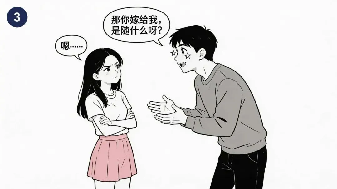 开心漫画:男友深情问嫁给我随什么,女友一个字让他灵魂出窍!