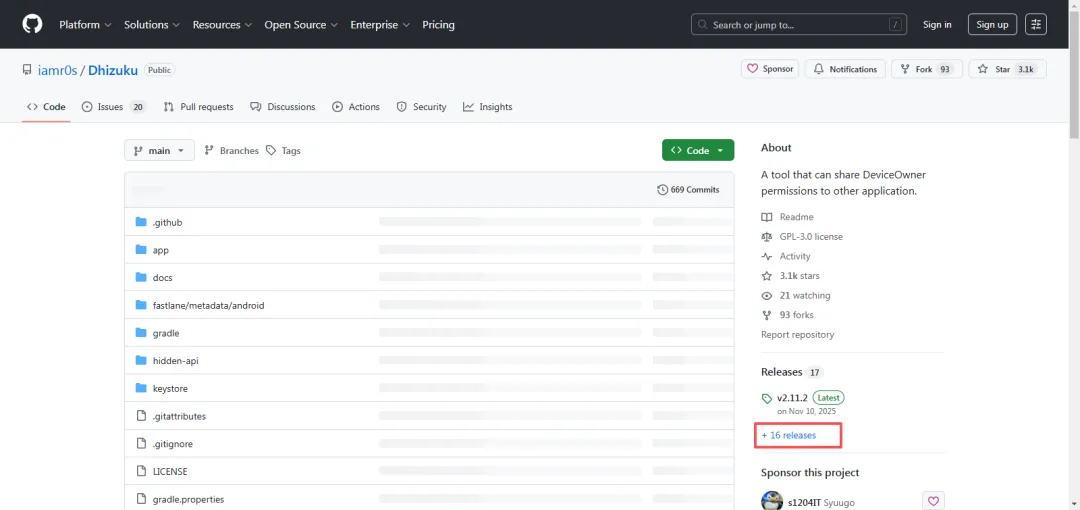 1、下载Dhizuku官网地址https://github.com/iamr0s/Dhizuku