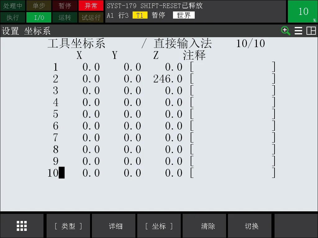 工件(用户)坐标系个数默认9个,最大 253个