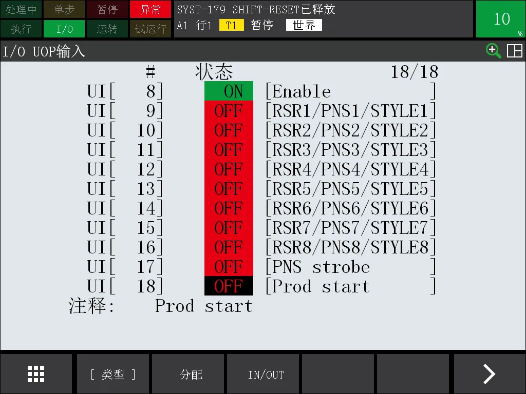 63、FANUC机器人禁用外部信号(变量$OPWORK.$UOP_DISABLE)实操