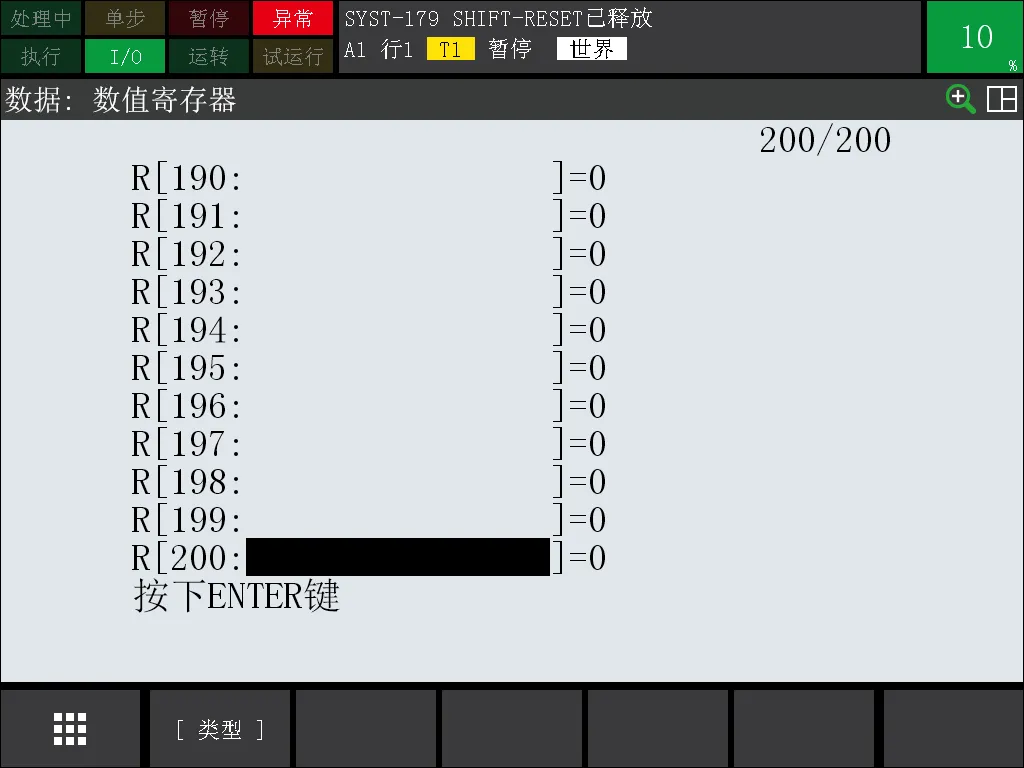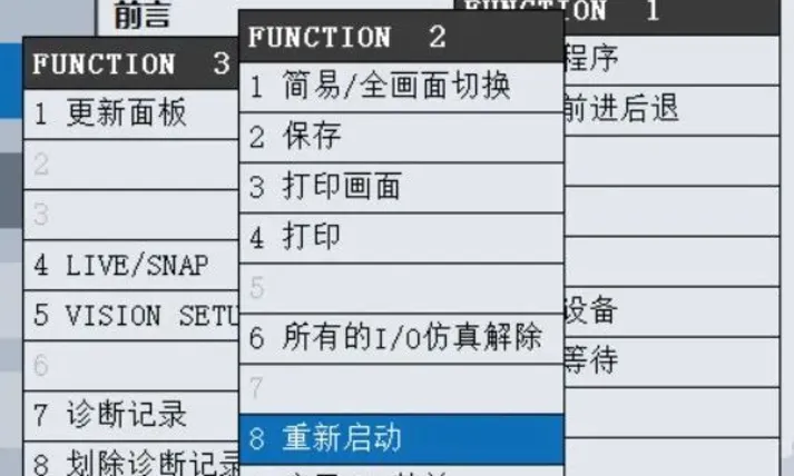 辅助菜单键“FCTN”——重新启动,按下示教器键盘“ENTER”键。