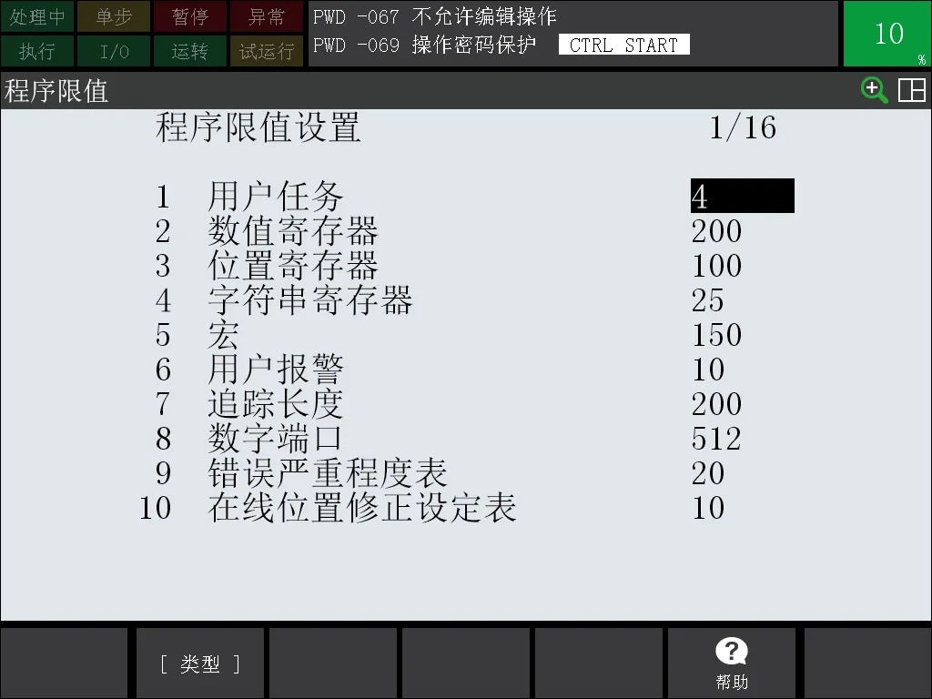 用户任务:默认4个,最大28个。控制器允许同时运行的最大TP程序数。