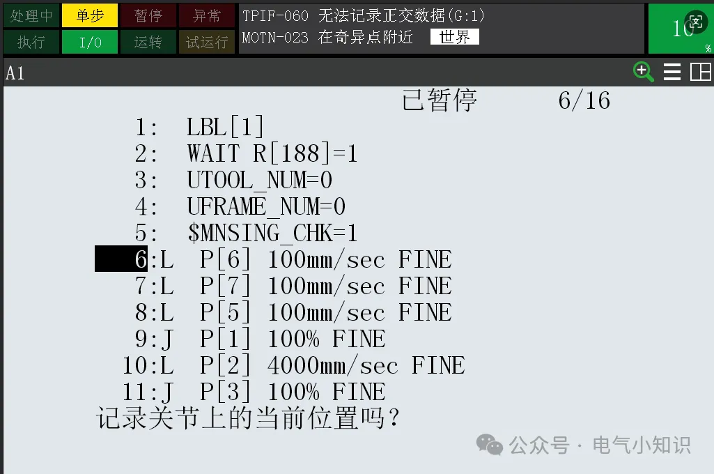 84、FANUC机器人奇异点检查功能(系统变量$MNSINGCHK)实操
