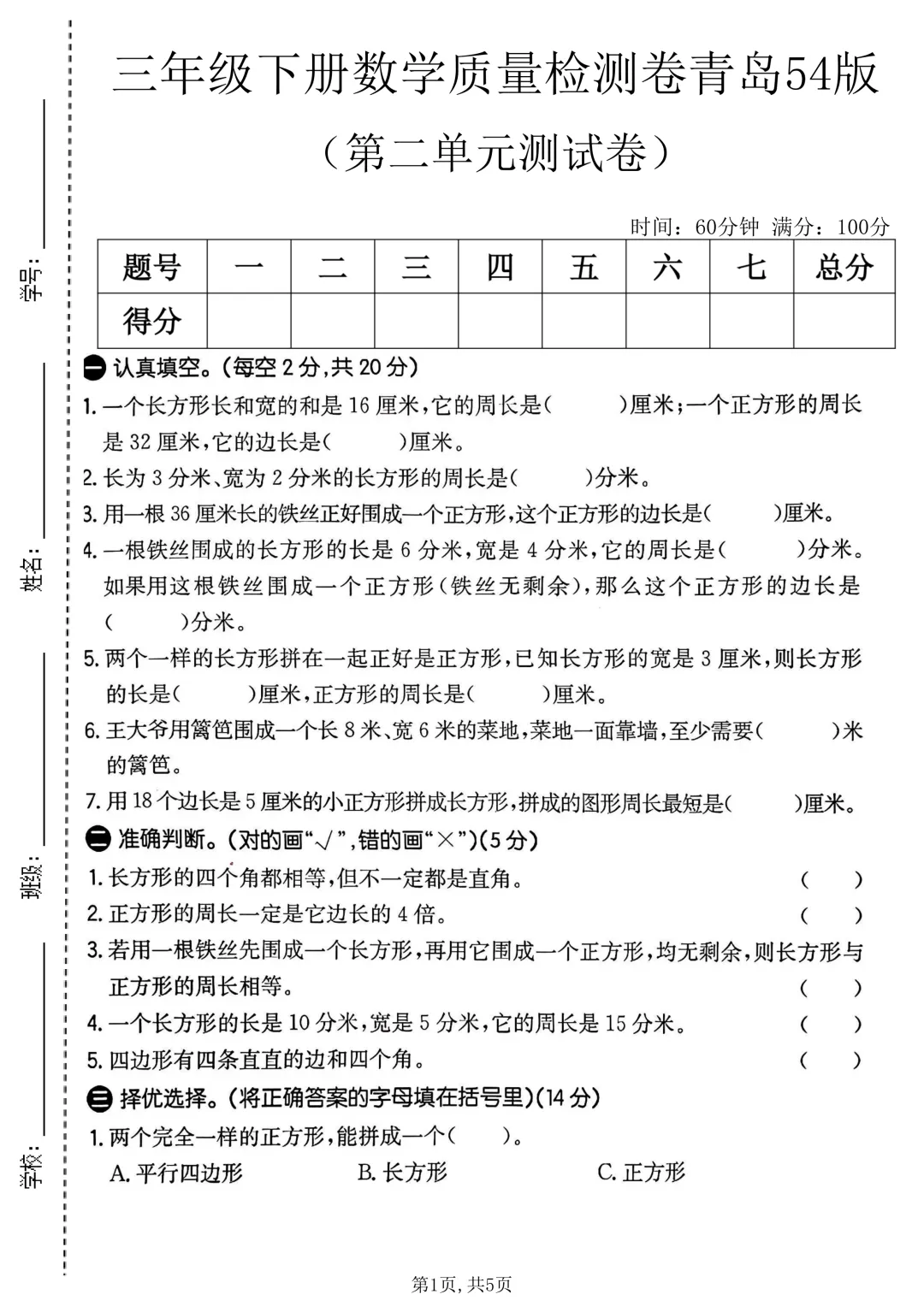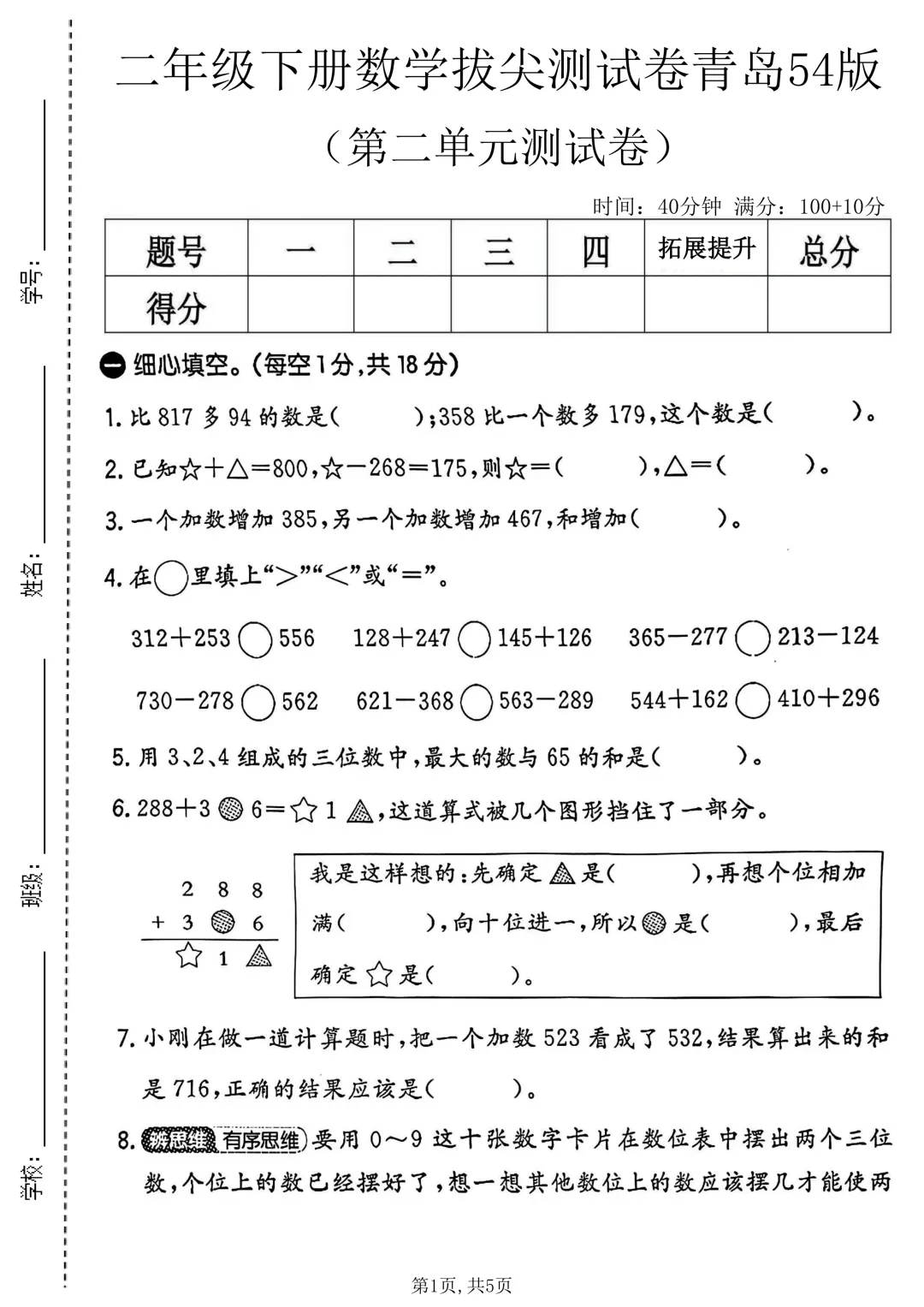 🔥2026 春一二三四五年级青岛 54 版数学下册第二单元名校测试卷上线!完整答案 + 高清可打印📄同步课本考点,名校真题题型,基础 + 拔高全覆盖,单元检测、考前查漏补缺超实用✅家长辅导、老师备课必备,一键下载刷题,轻松攻克单元重难点💯# 青岛 54 版数学下册 #小学数学单元测试#一年级数学#五年级数学#数学试卷含答案#名校测试卷