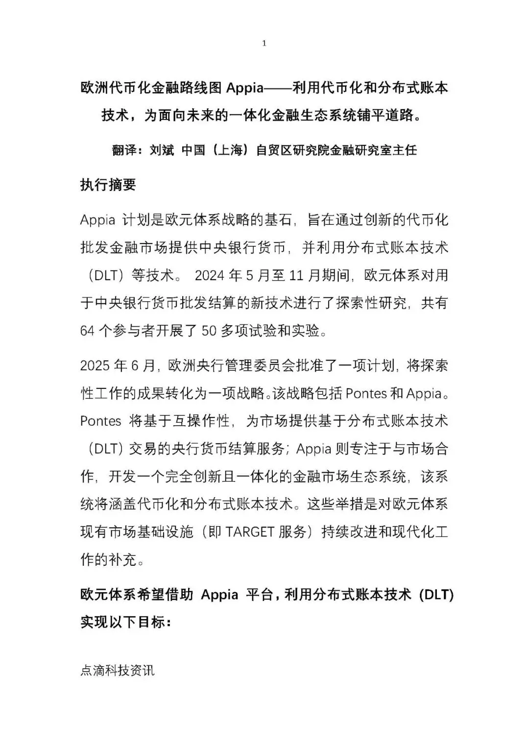 欧洲代币化金融路线图Appia——利用代币化和分布式账本技术,为面向未来的一体化金融生态系统铺平道路