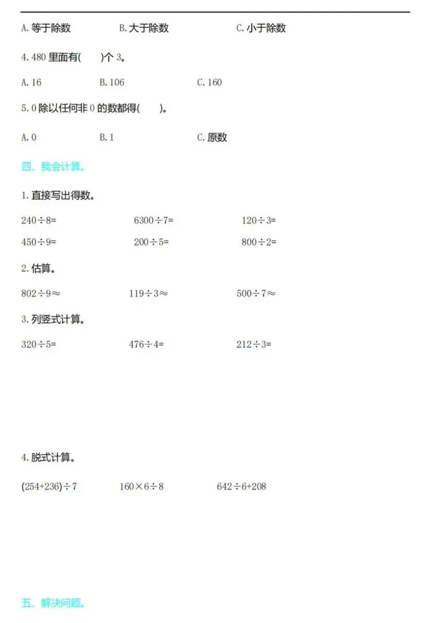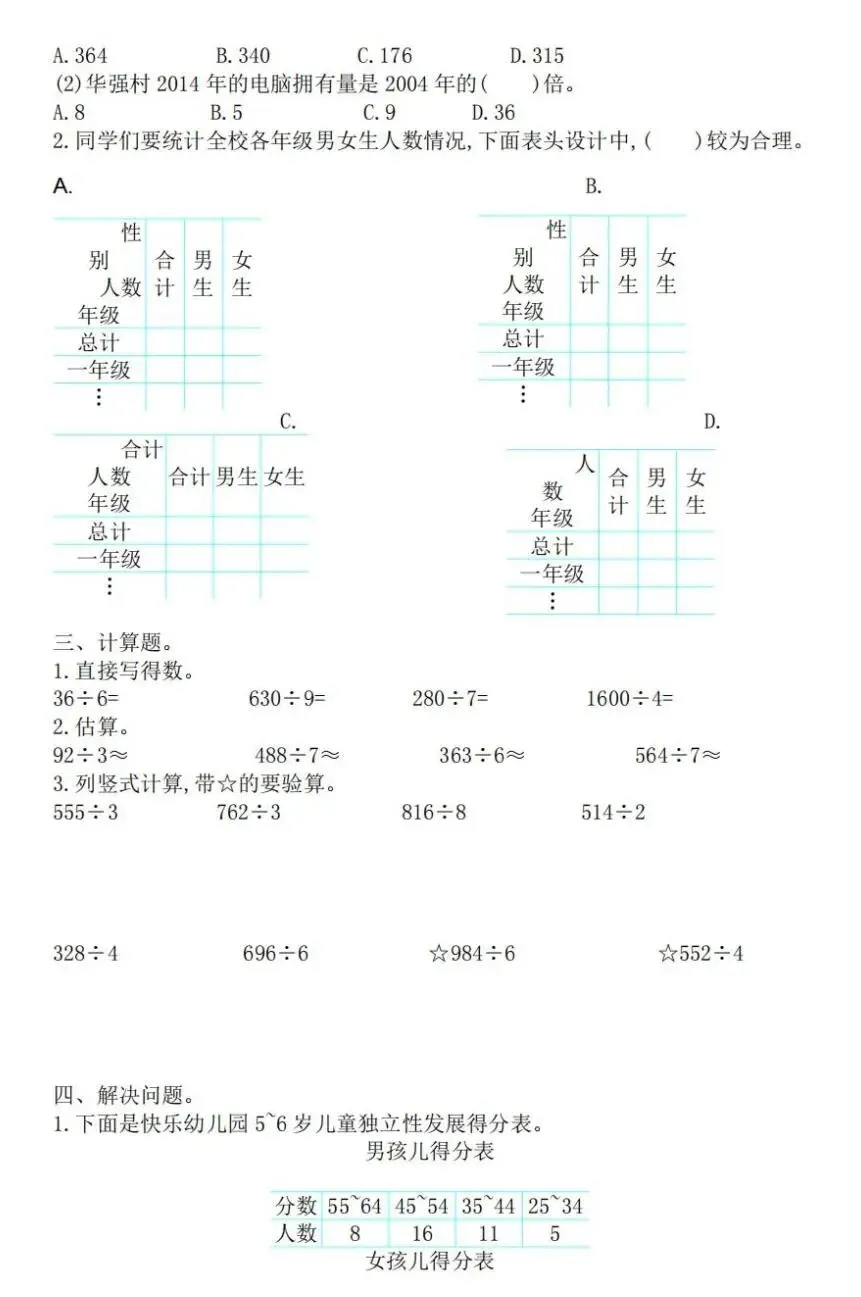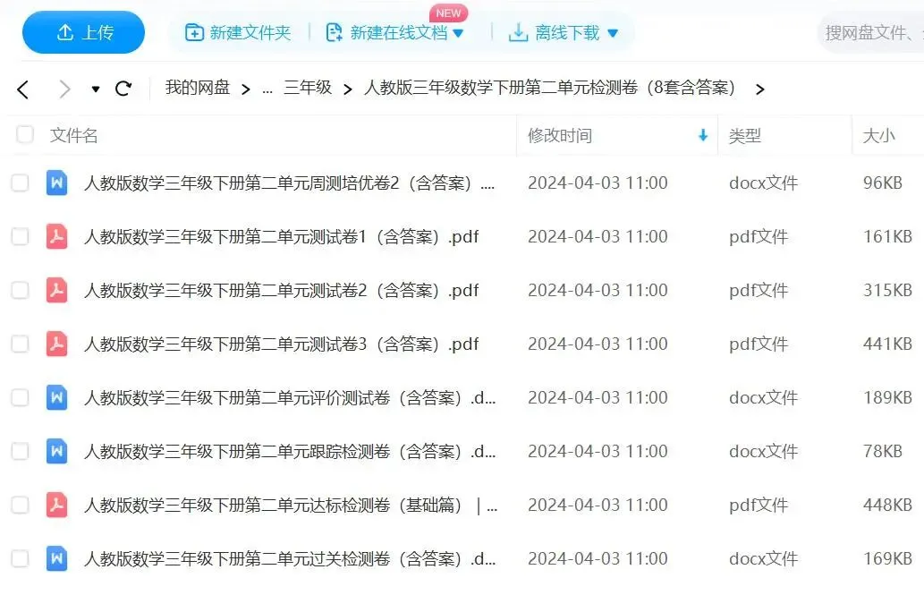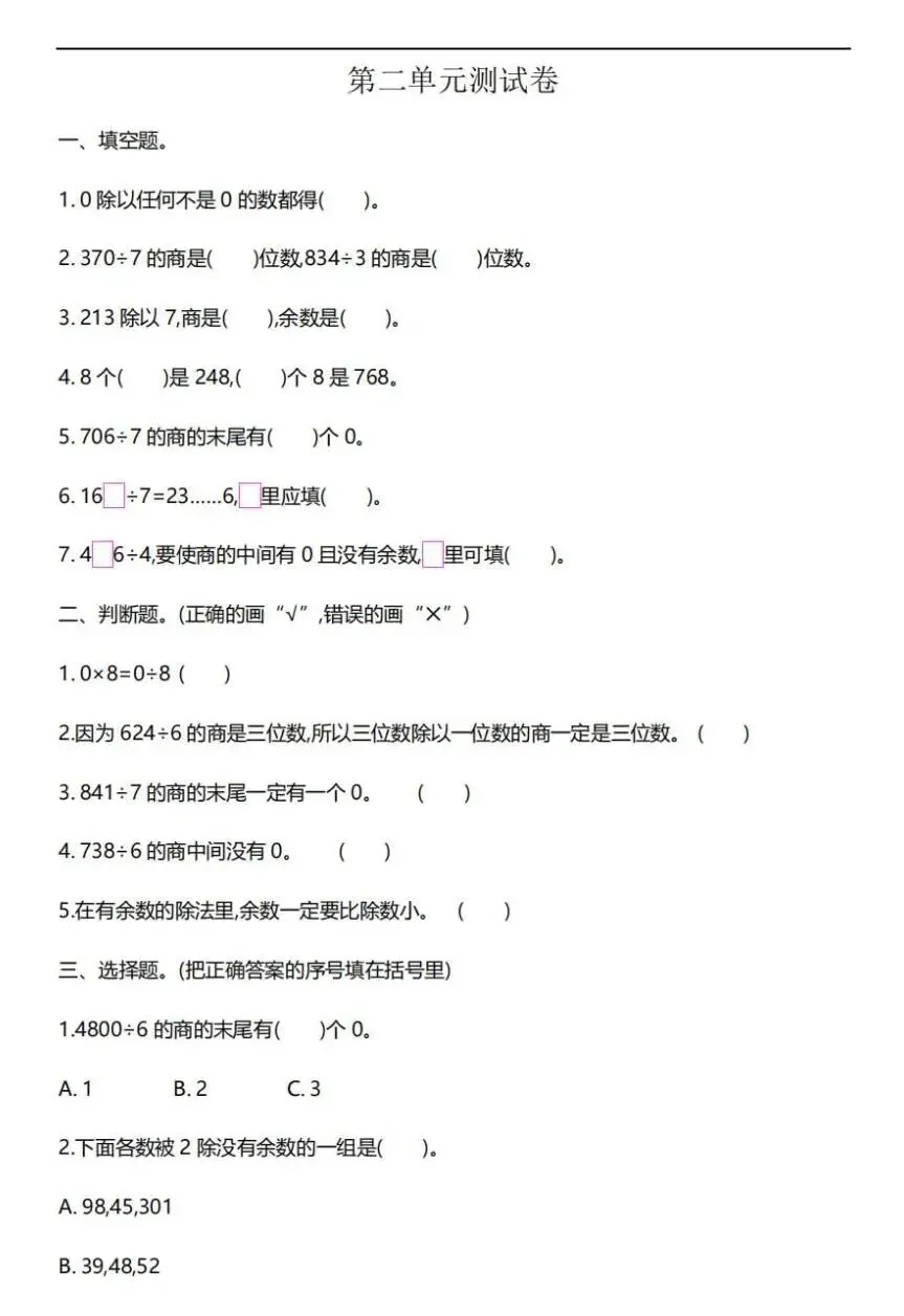 部分三单元试卷图片预览