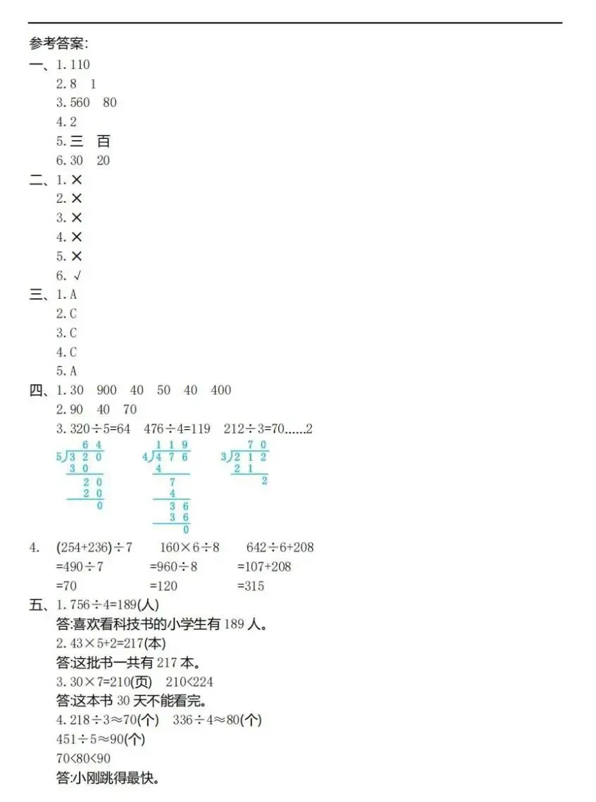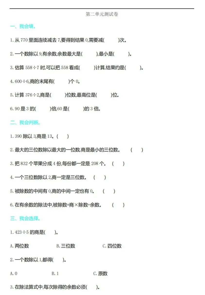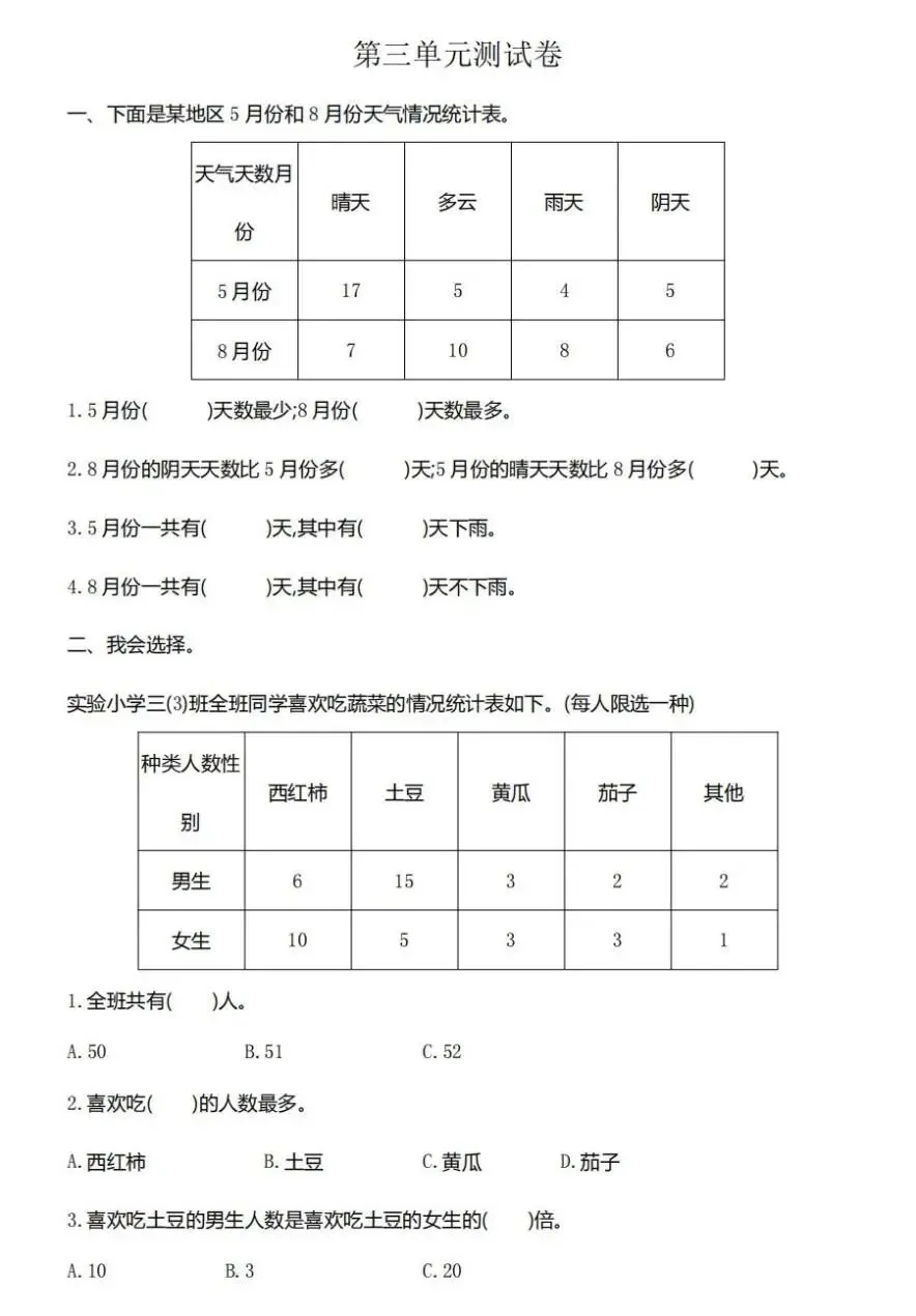 【可下载】人教版三年级下册1——3单元测试卷(内含PDF、Word版本)