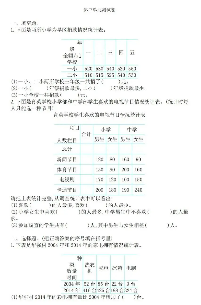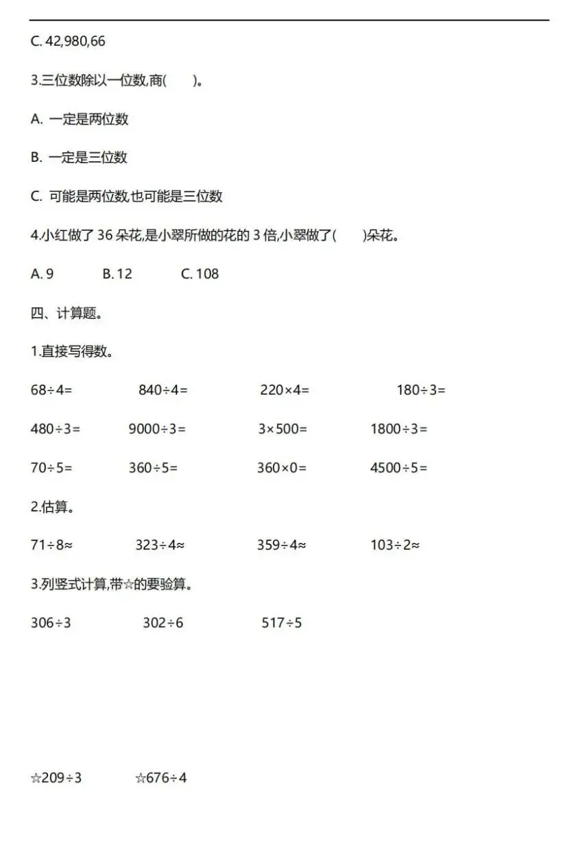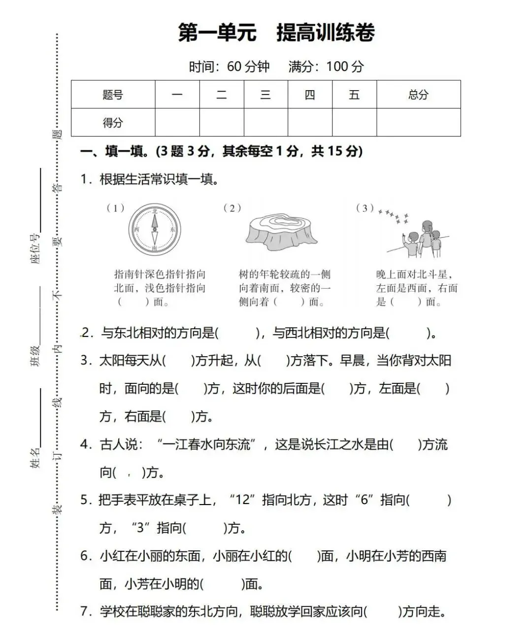 【可下载】人教版三年级下册1——3单元测试卷(内含PDF、Word版本)