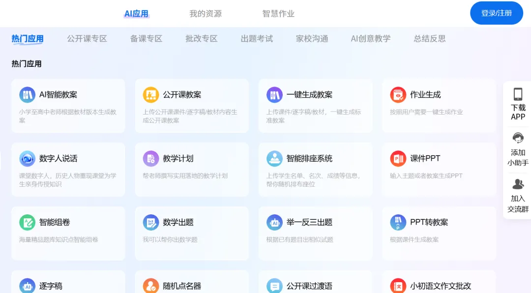 据介绍,在“技能广场”中,教师可以根据需要一键安装智能教案、课后作业、教学计划等常用功能;“MCP广场”则接入了教研云题库等资源和多种工具,方便教师在出题组卷时获取更丰富的内容支持。