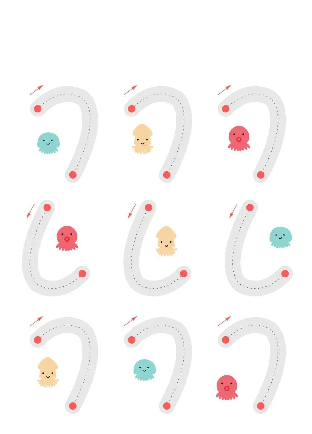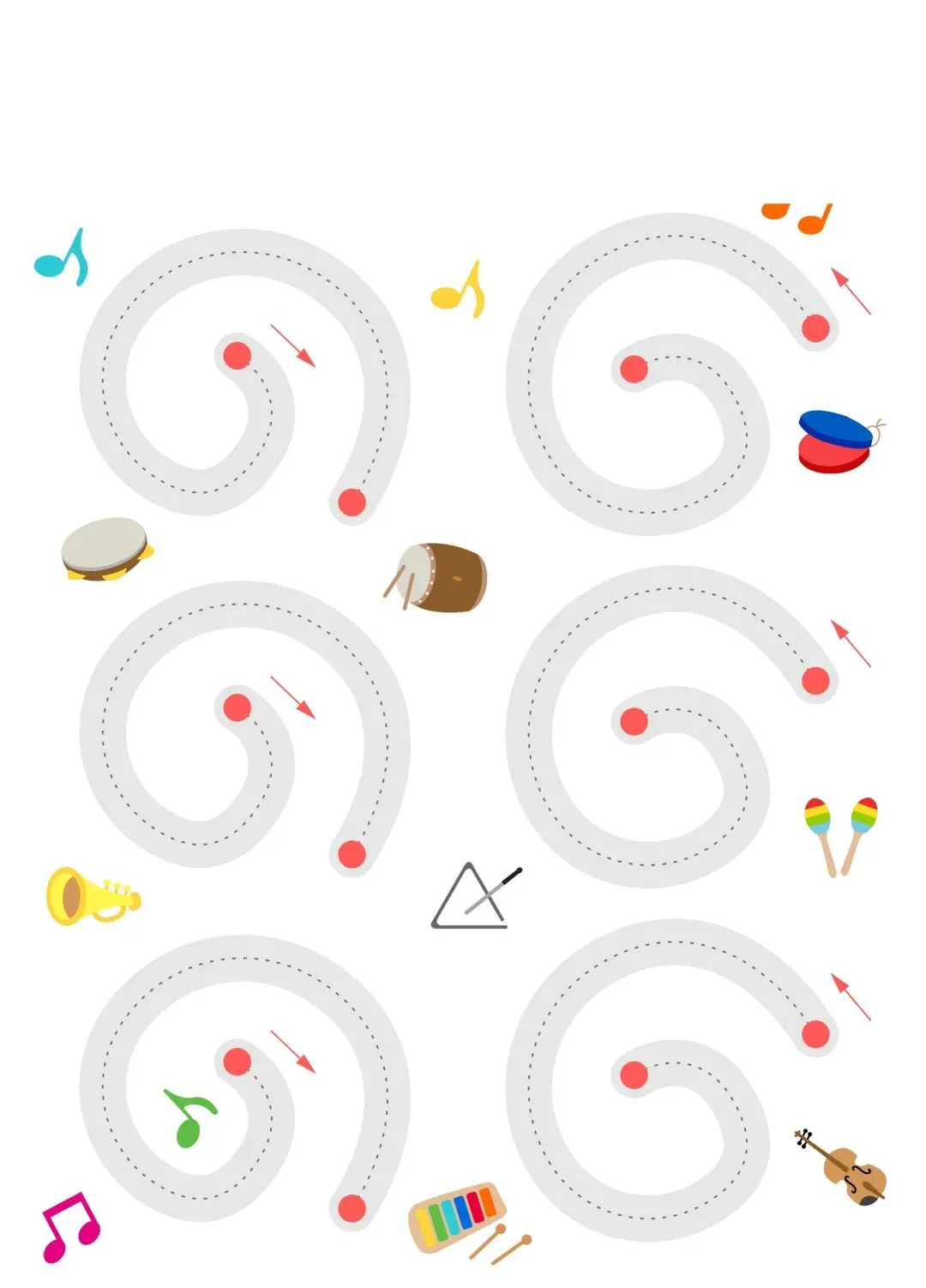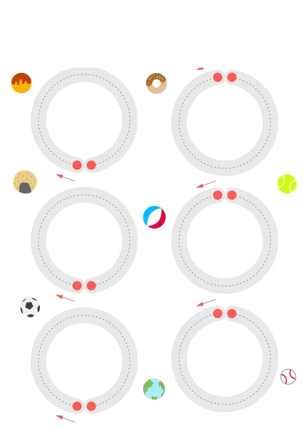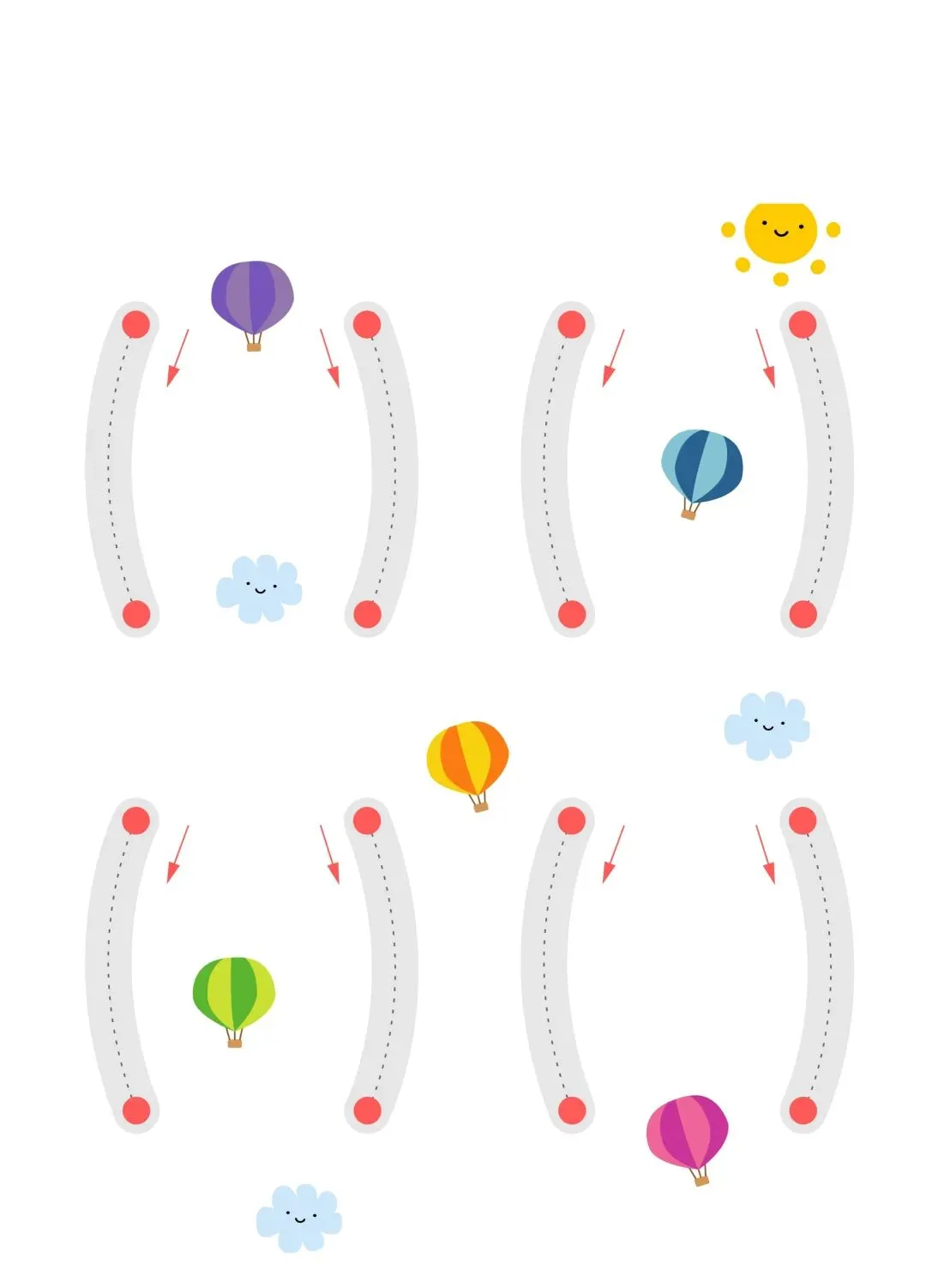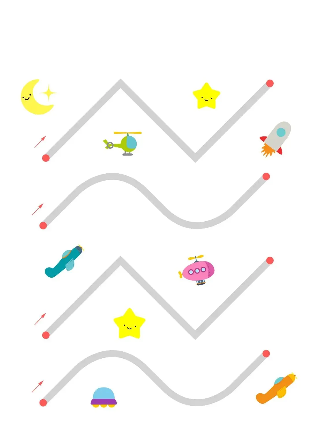 1. 控笔能力:画直线、曲线、圆圈、连线,练手稳、手眼协调。