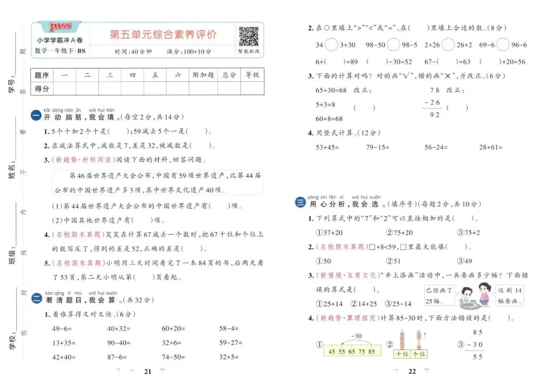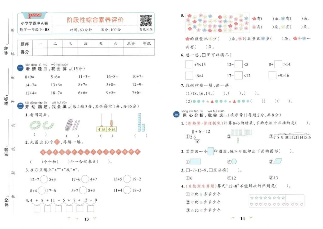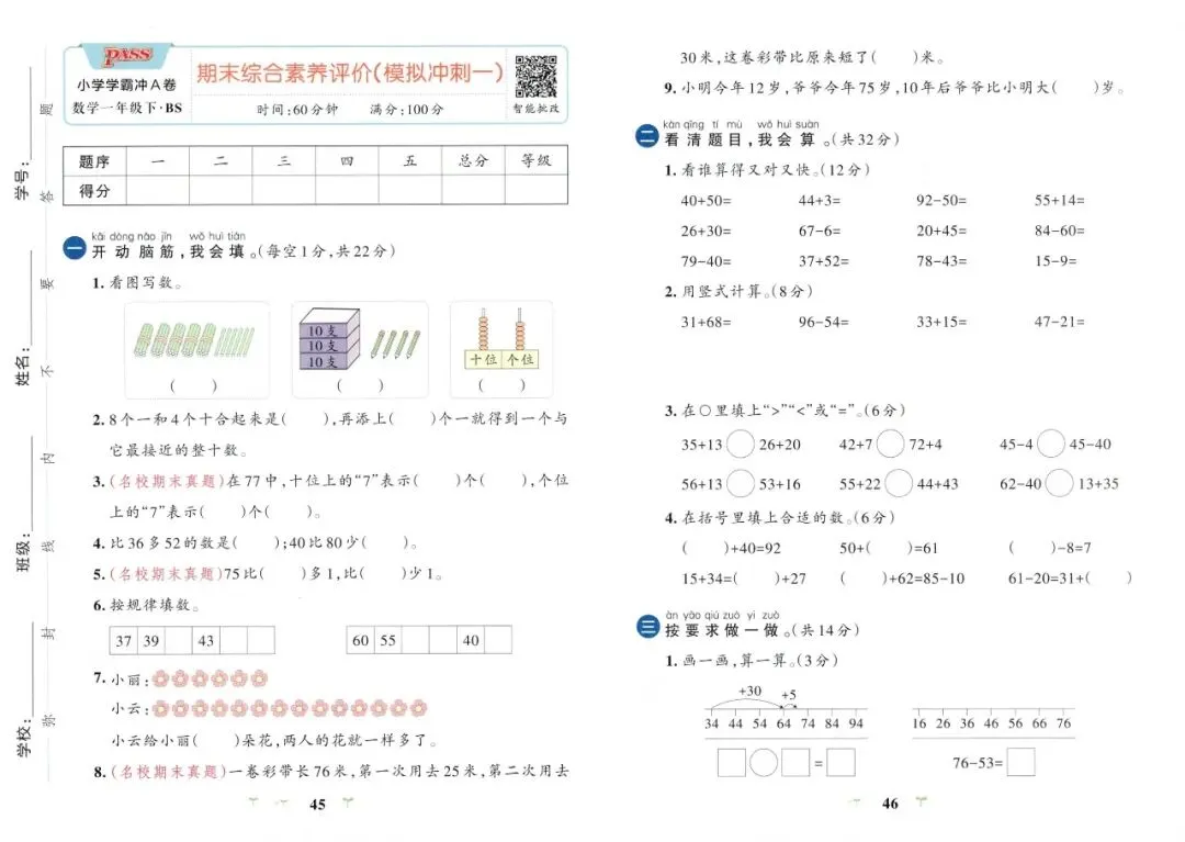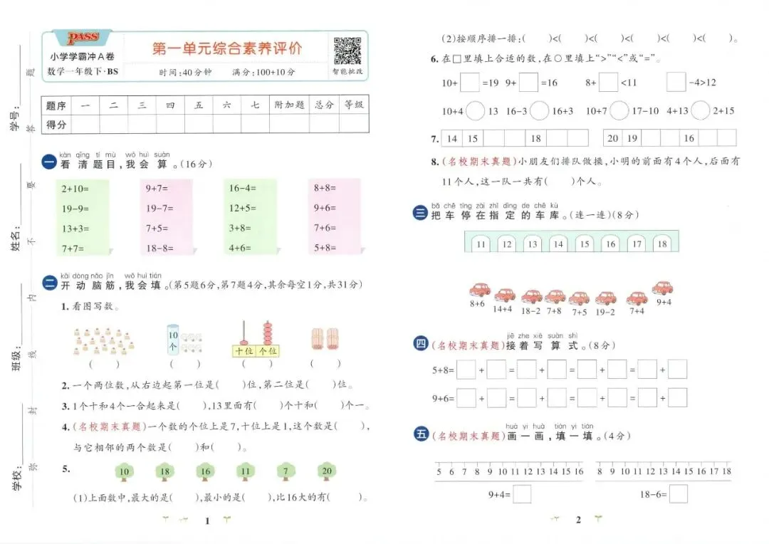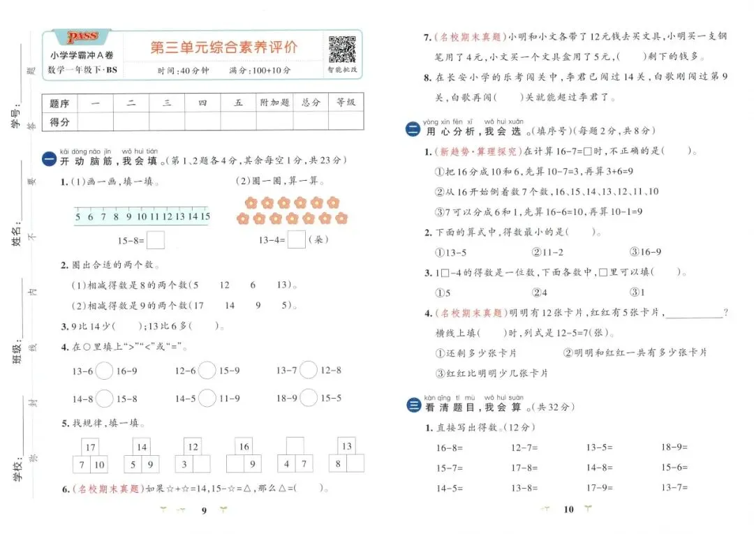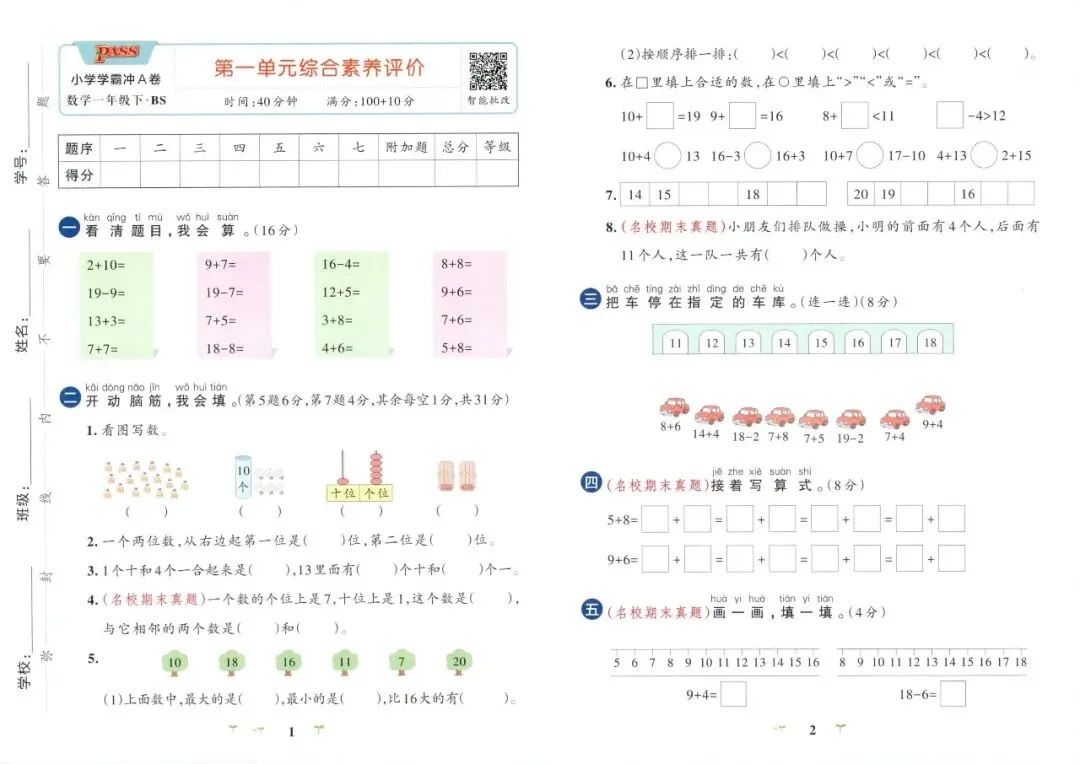 26春北师大版数学一年级下册《1~8单元测试卷+期中测试卷+专项练习+期末测试卷》(含答案)高清可打印
