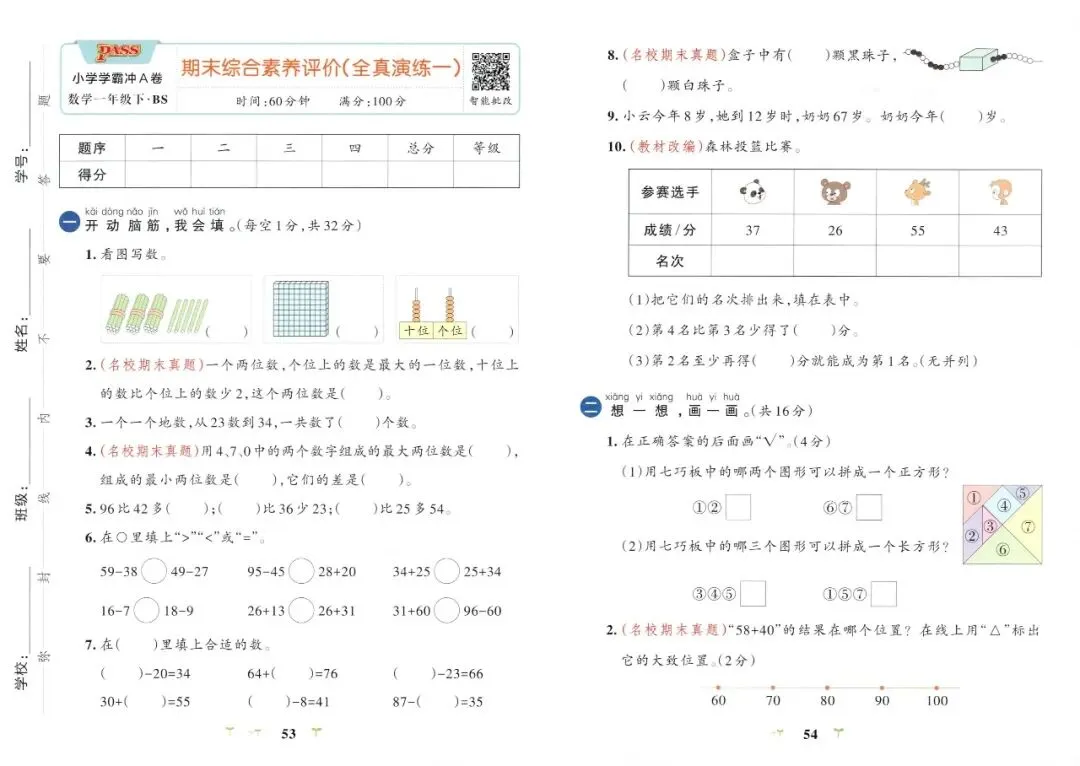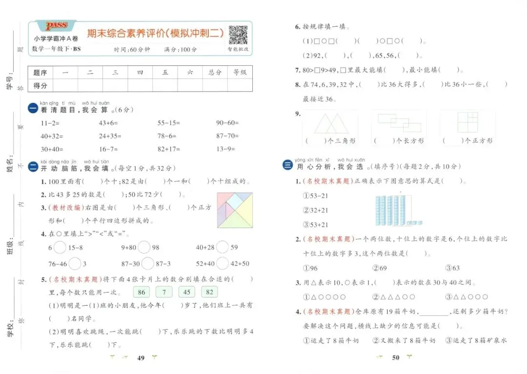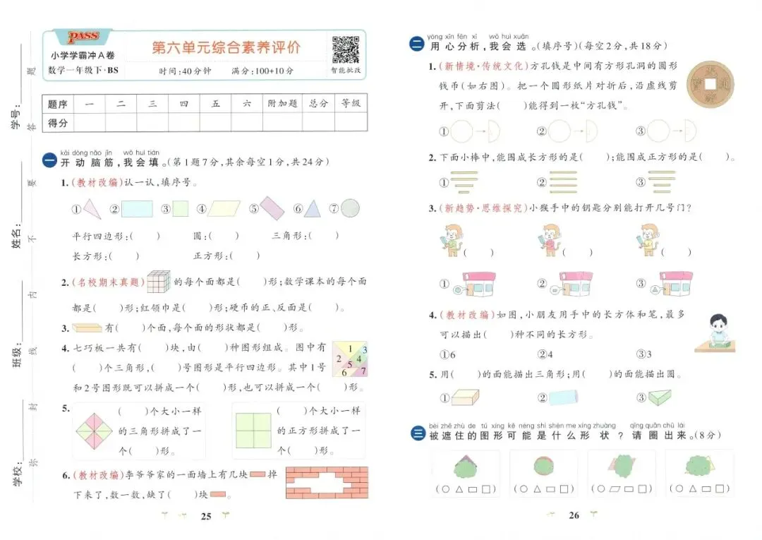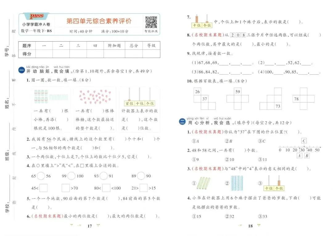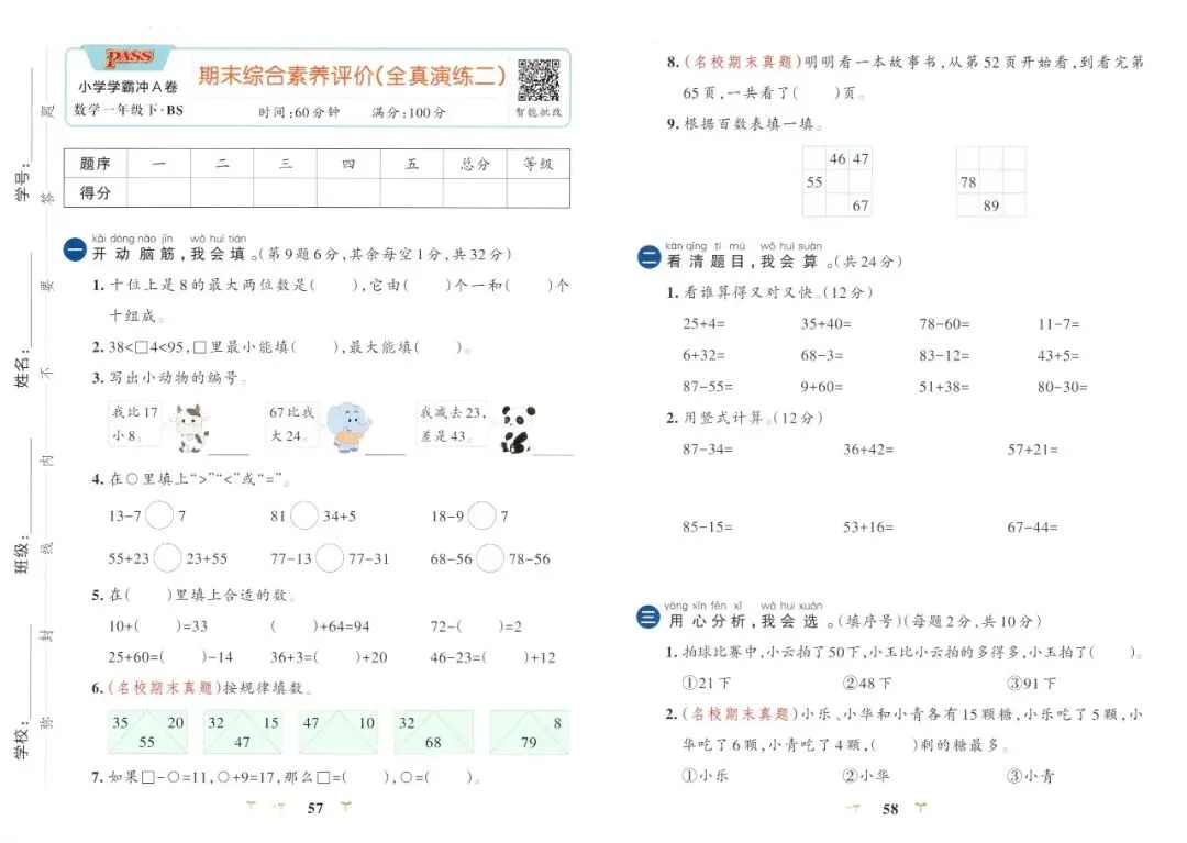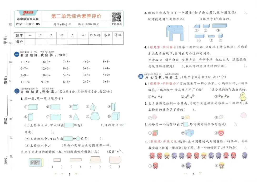 26春北师大版数学一年级下册《1~8单元测试卷+期中测试卷+专项练习+期末测试卷》(含答案)高清可打印