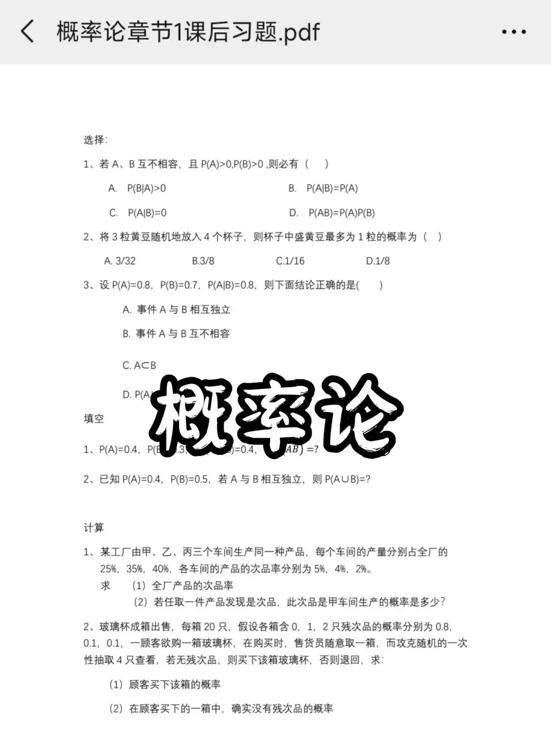 【大学辅导】概率论与数理统计、高数教材电子版