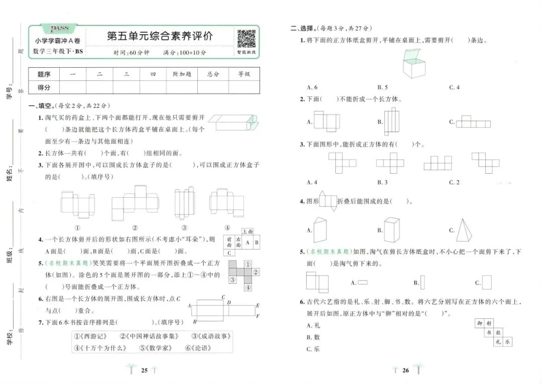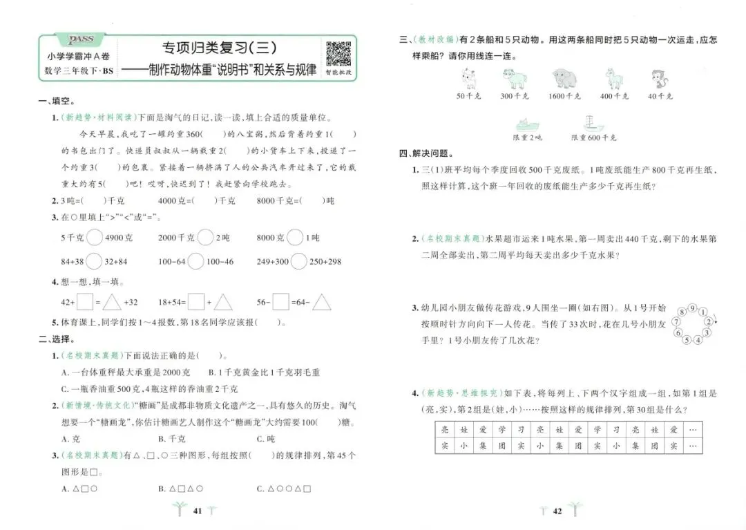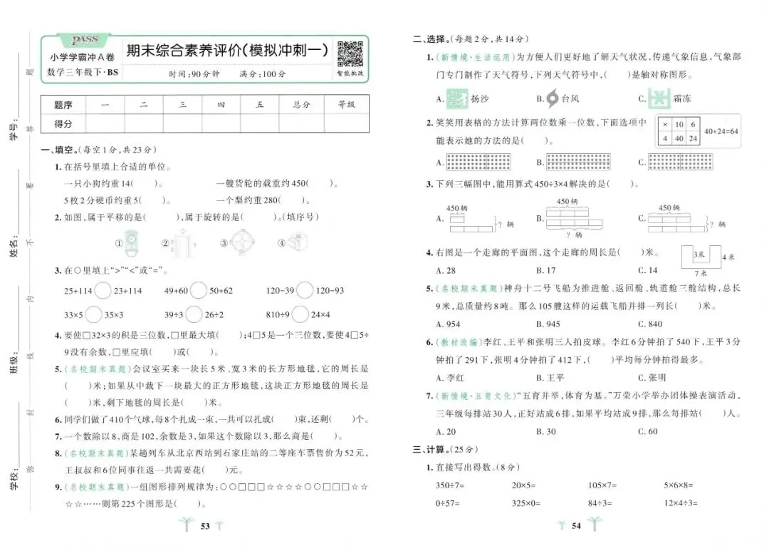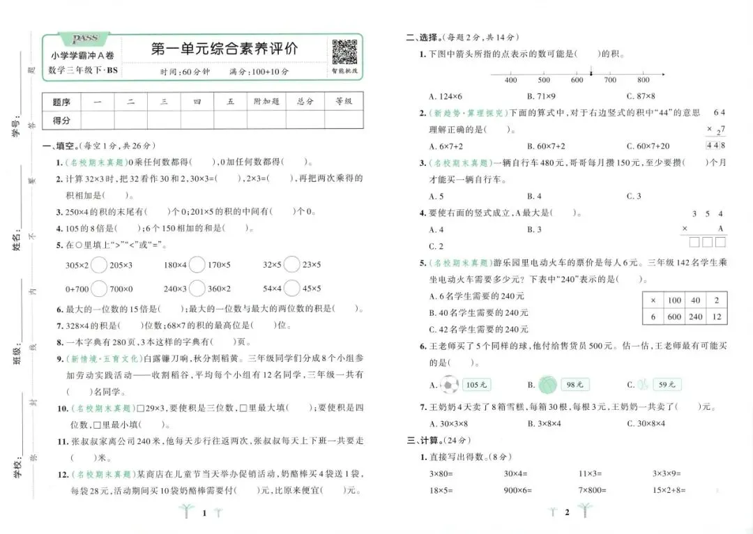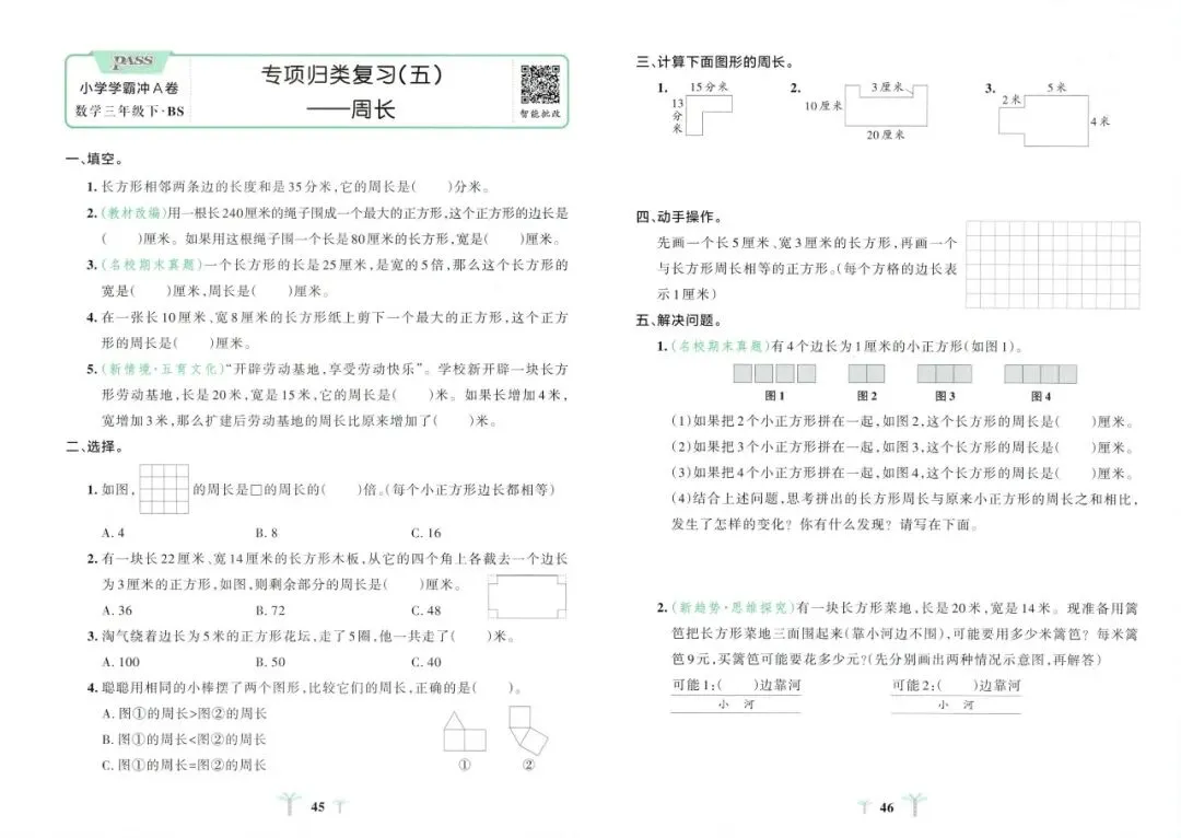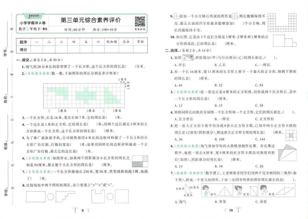 26春北师大版数学三年级下册《1~8单元测试卷+期中测试卷+专项练习+期末测试卷》(含答案)高清可打印