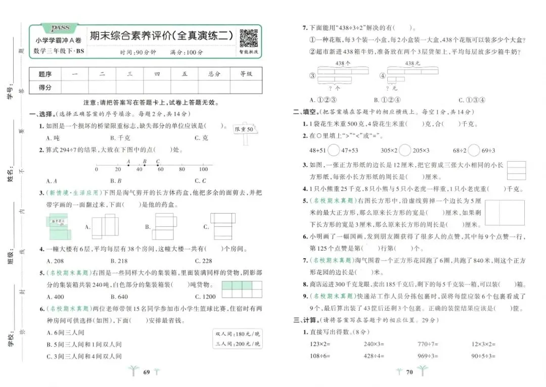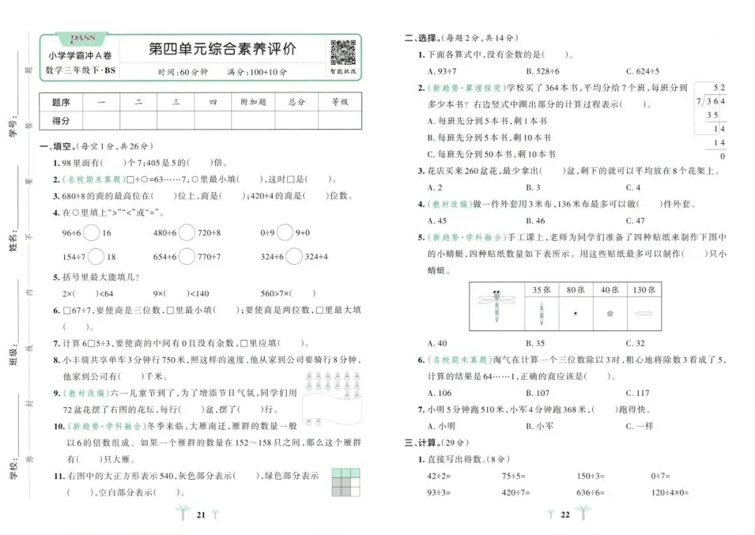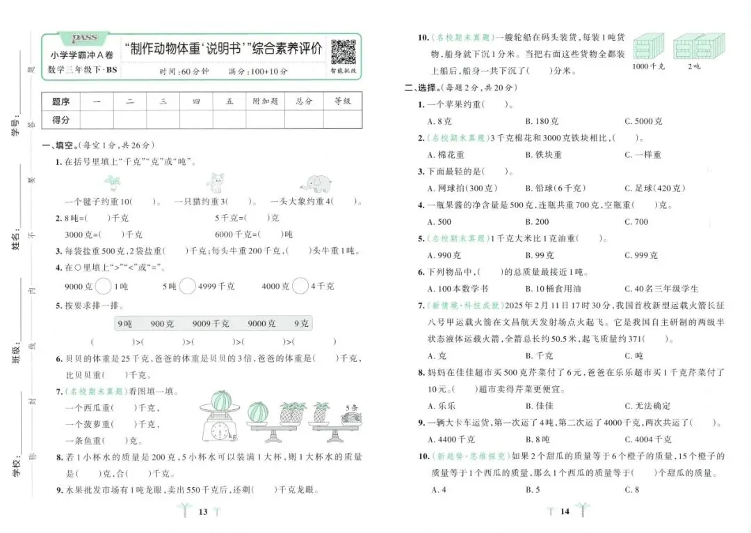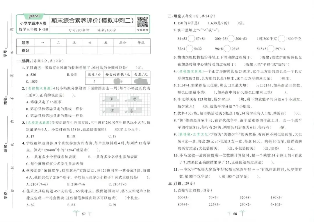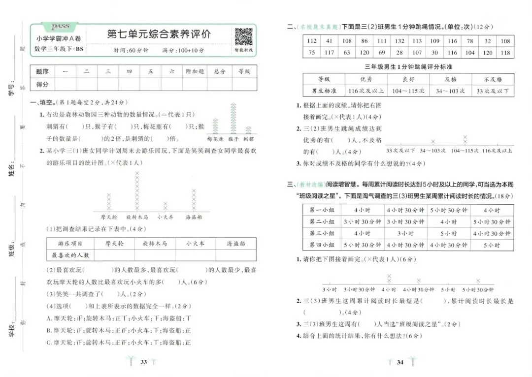 26春北师大版数学三年级下册《1~8单元测试卷+期中测试卷+专项练习+期末测试卷》(含答案)高清可打印