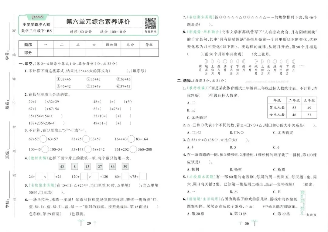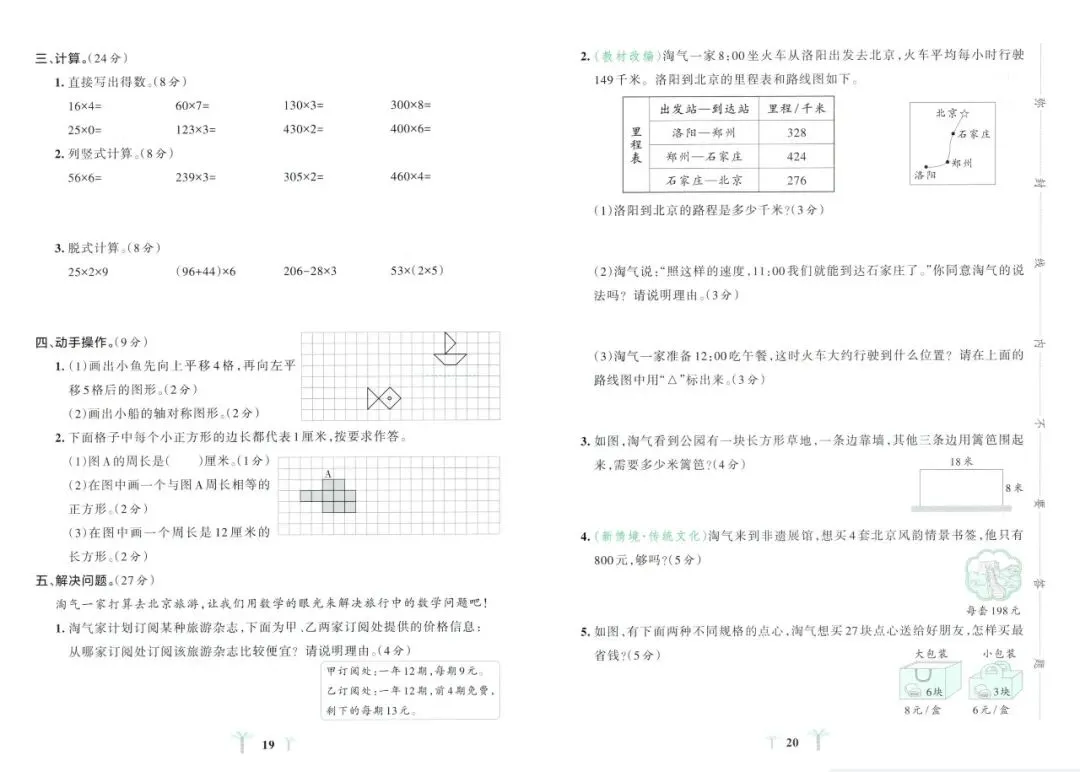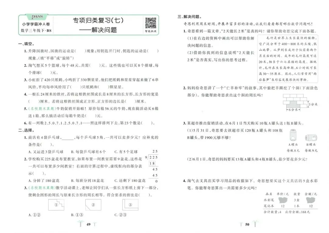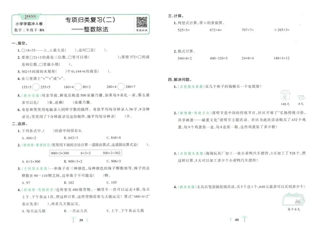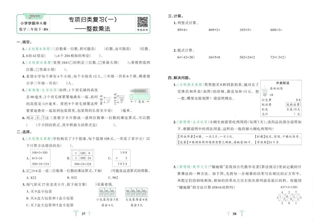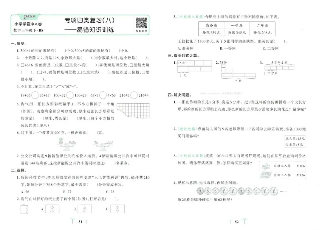 26春北师大版数学三年级下册《1~8单元测试卷+期中测试卷+专项练习+期末测试卷》(含答案)高清可打印