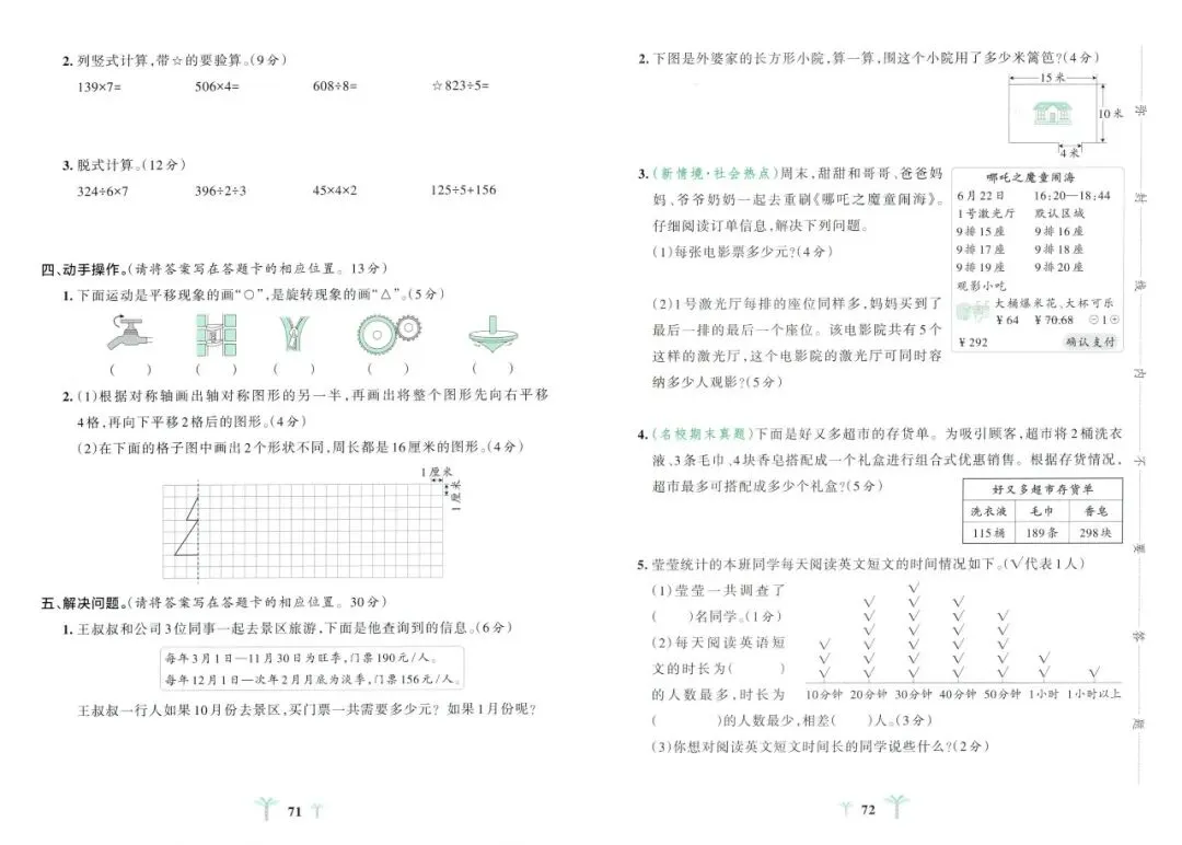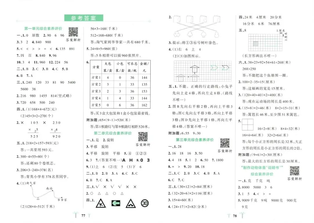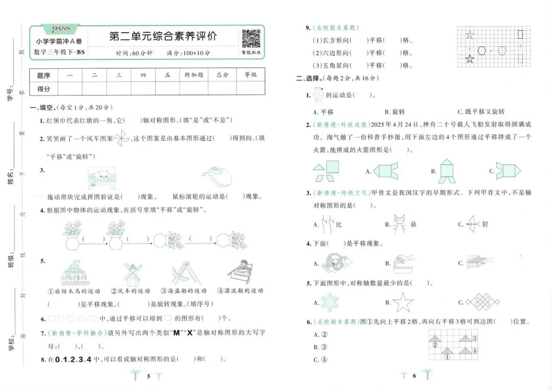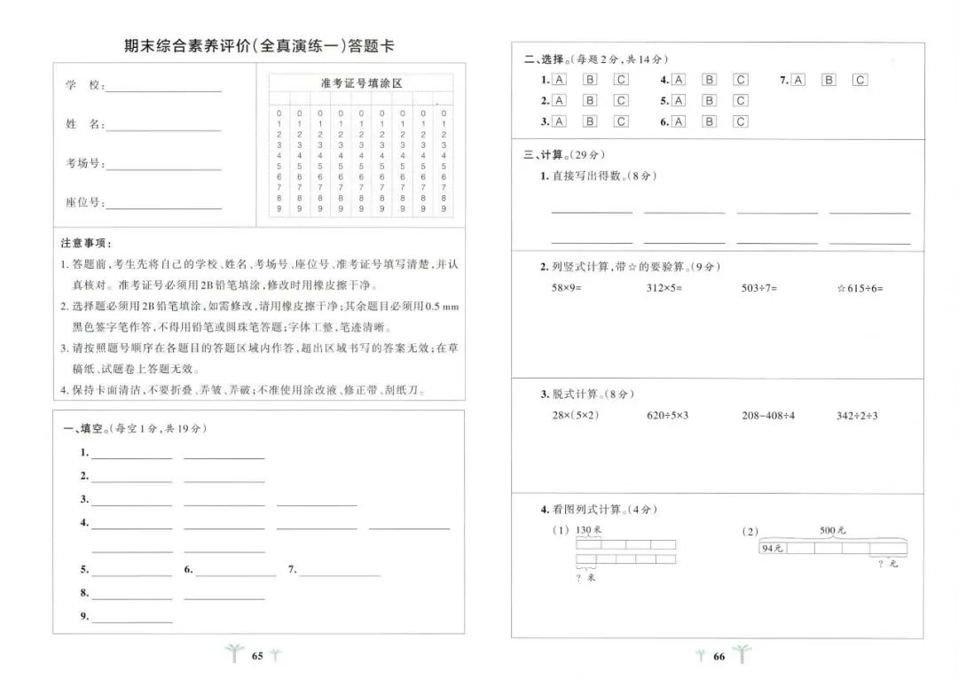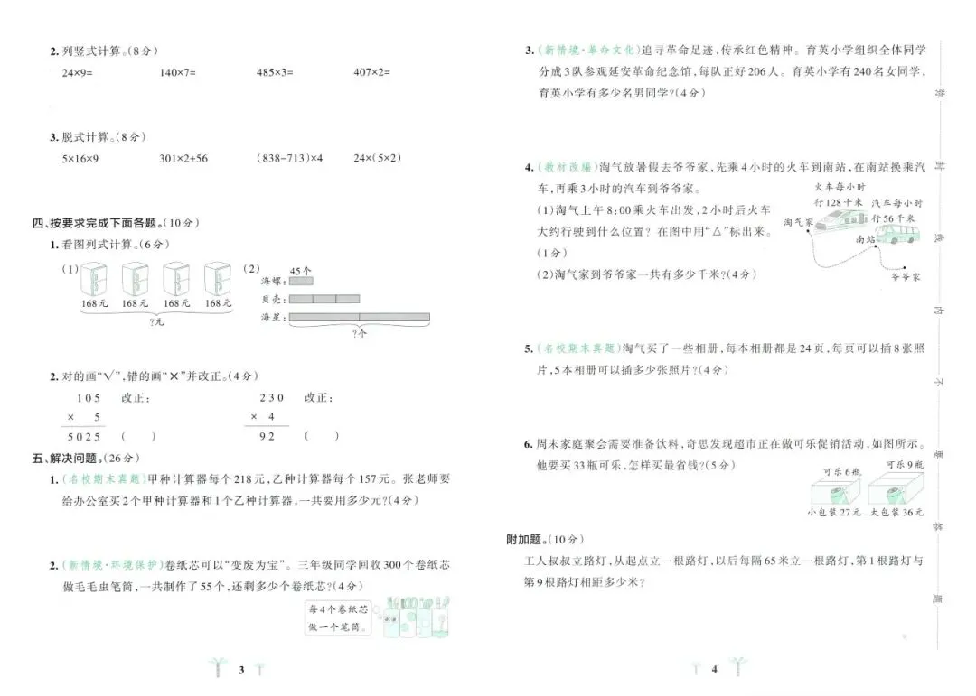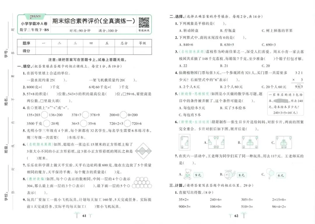 26春北师大版数学三年级下册《1~8单元测试卷+期中测试卷+专项练习+期末测试卷》(含答案)高清可打印