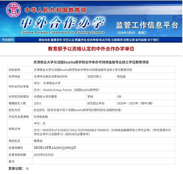 法国Excelia商学院与天津商业大学可持续金融中外合作办学项目正式获批